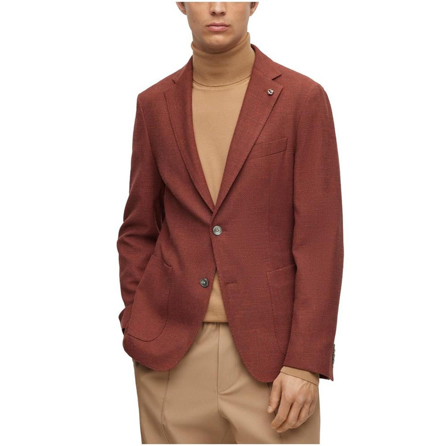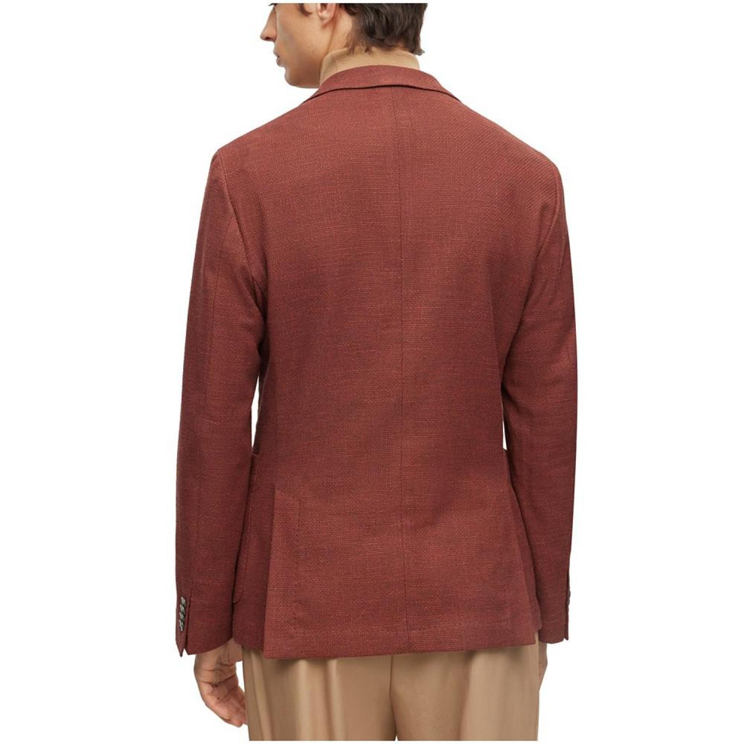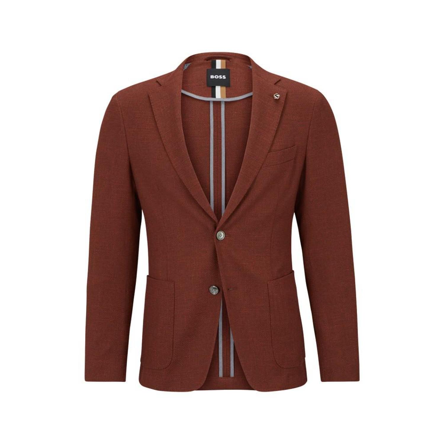 A contemporary jacket cut to a defined fit in a micro-patterned cotton blend with linen and stretch by BOSS menswear.