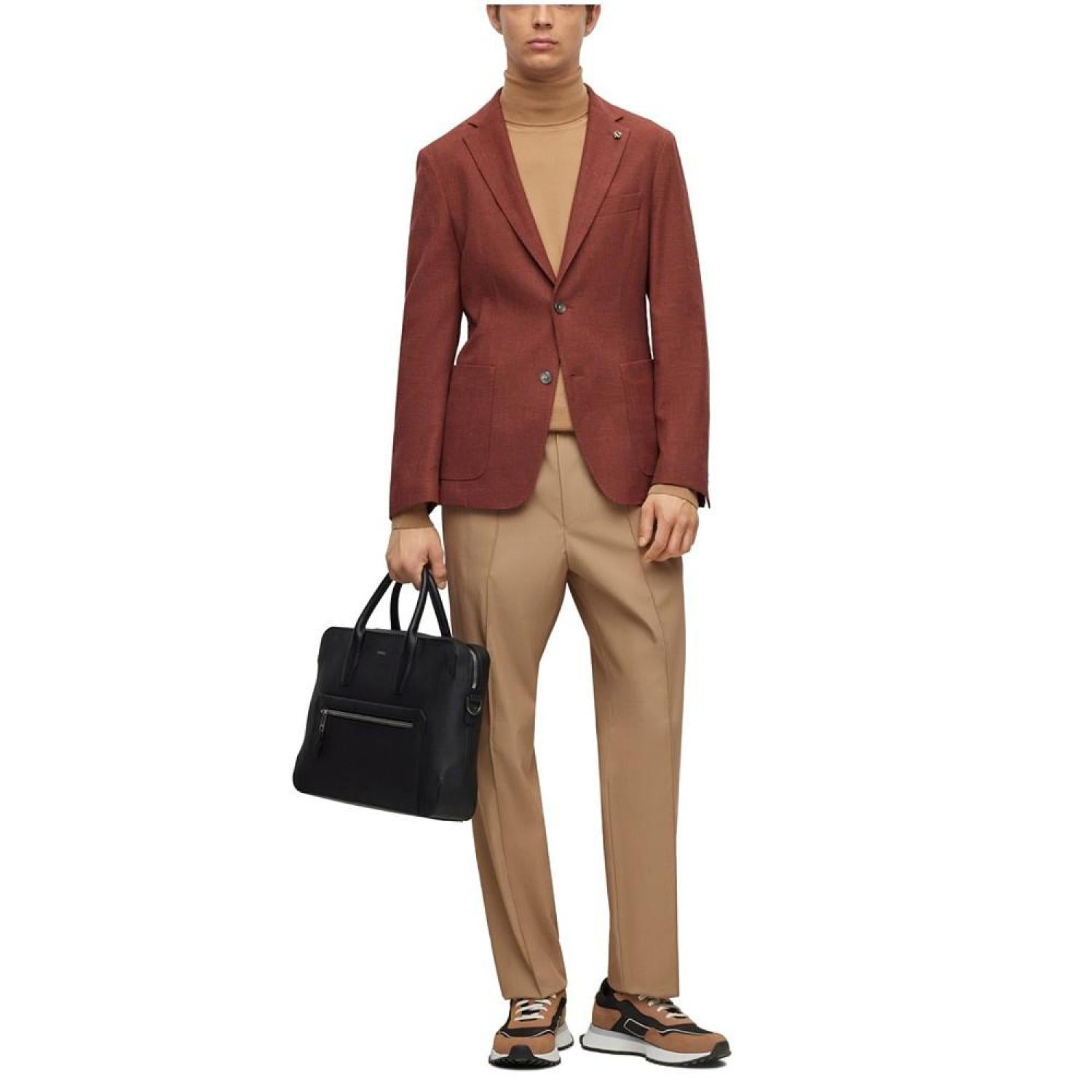 • A contemporary jacket cut to a defined fit in a micro-patterned cotton blend with linen and stretch by BOSS menswear.