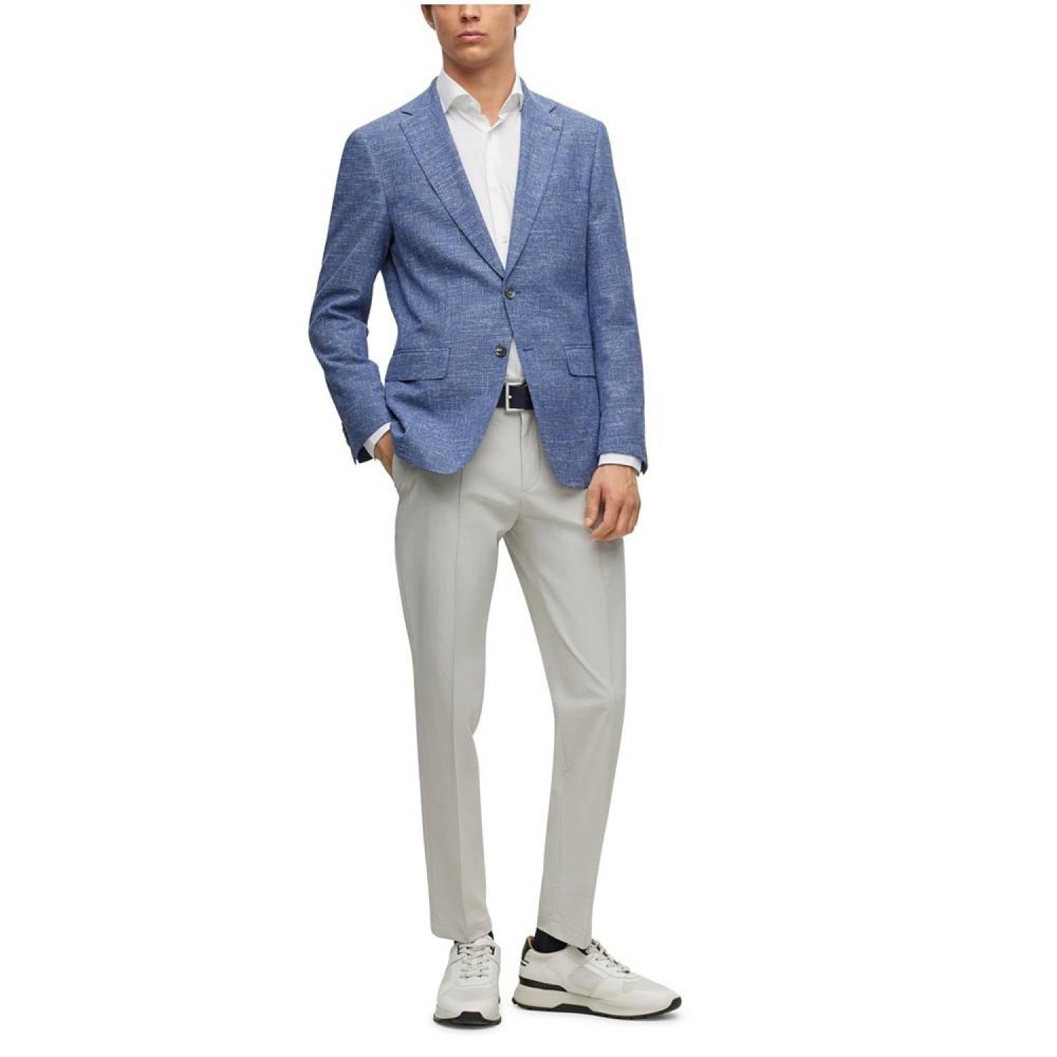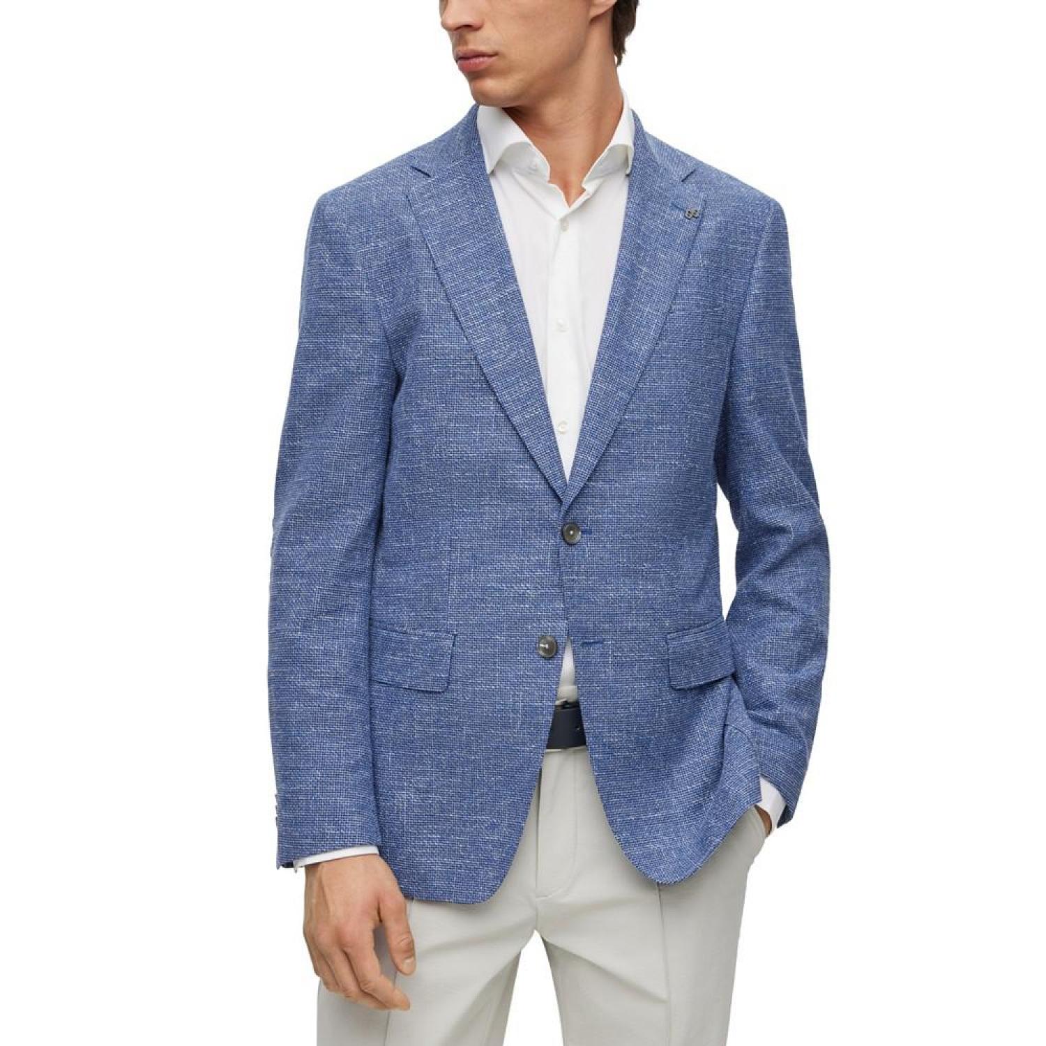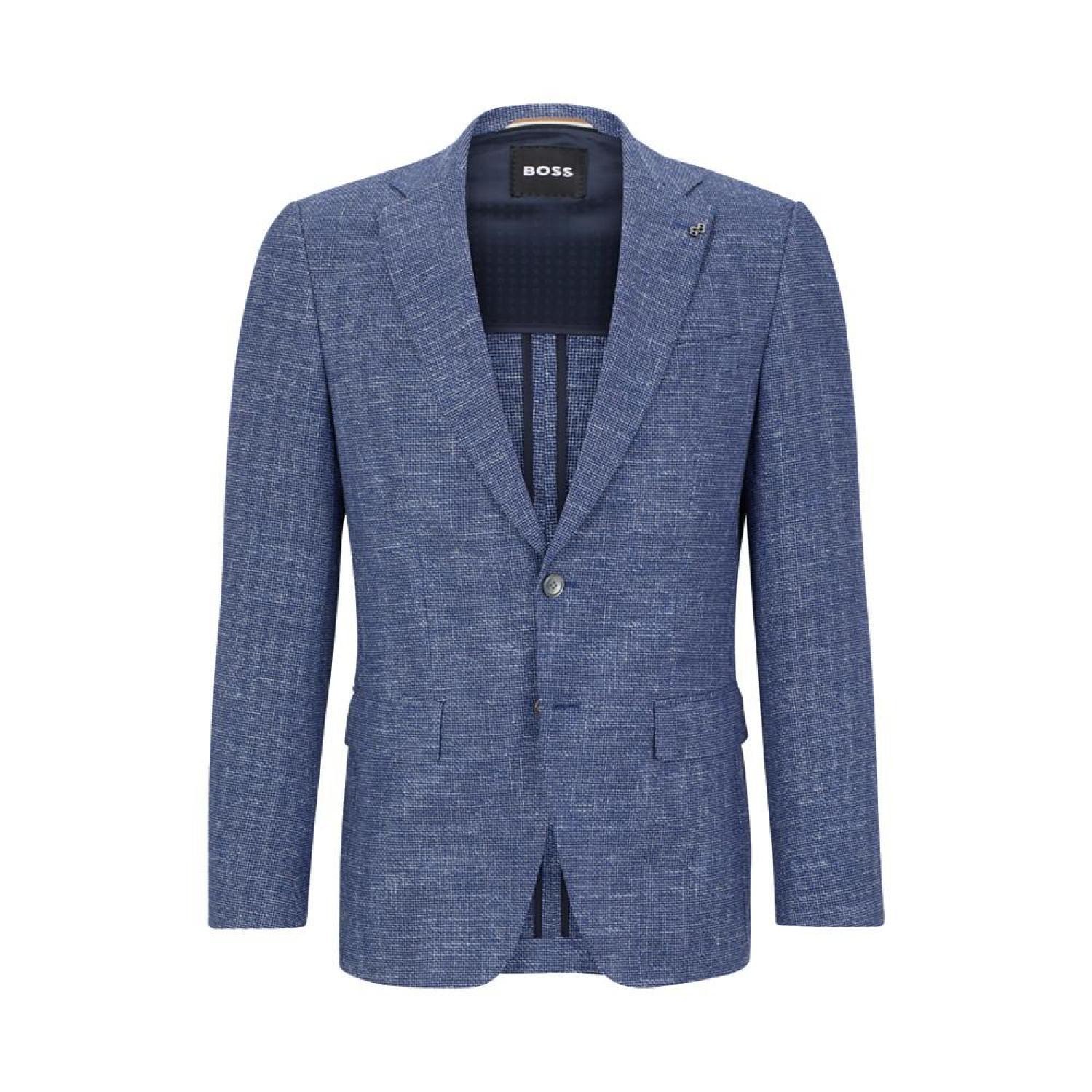 • A contemporary jacket by BOSS Menswear, cut to a slim fit in a micro-patterned cotton blend with linen and stretch.