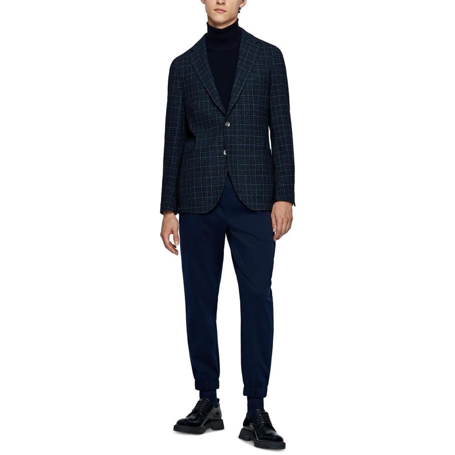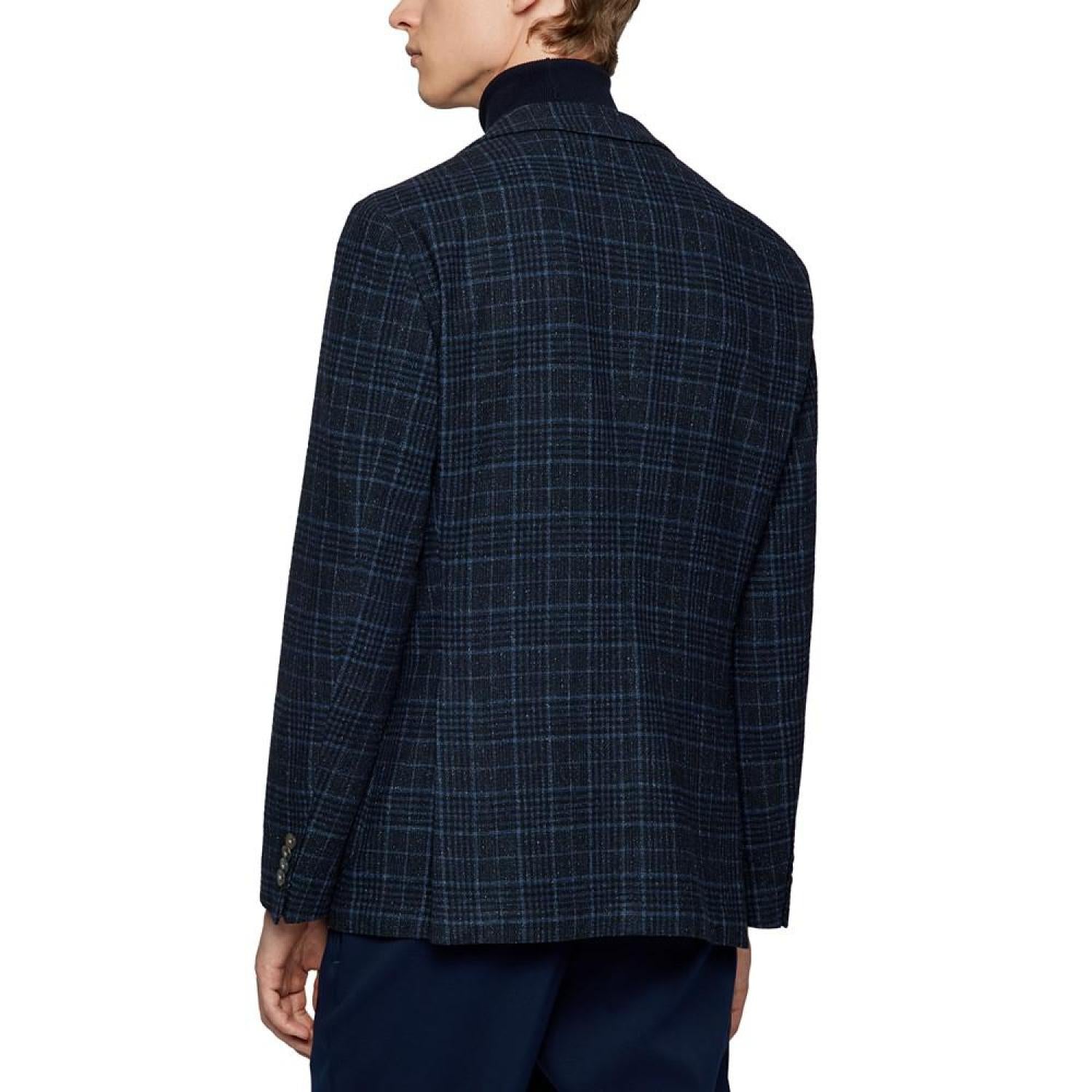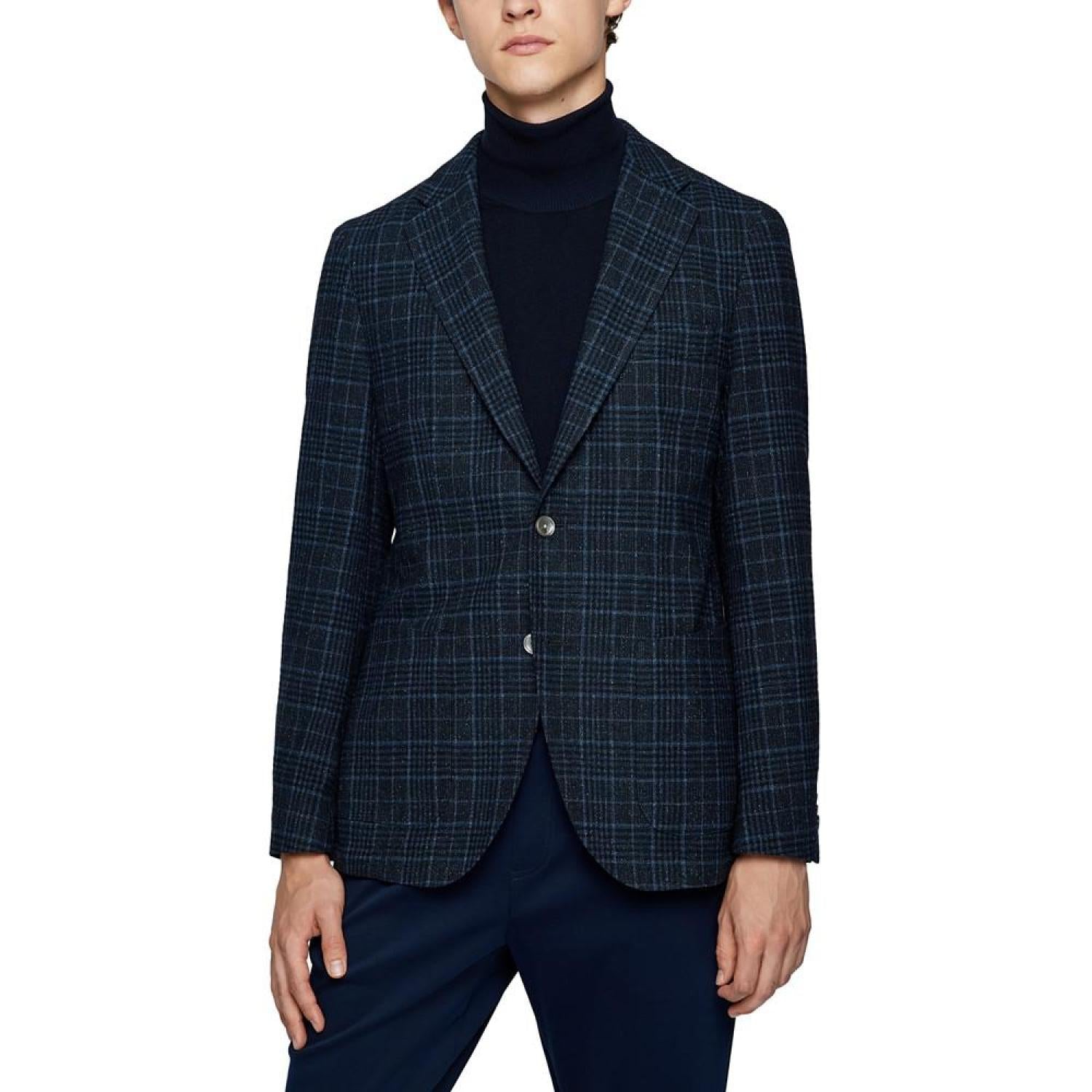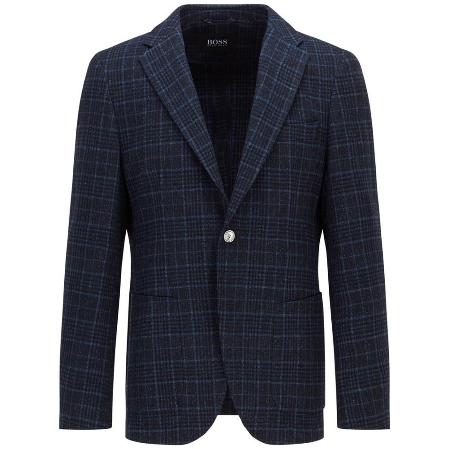 An elegant jacket cut to a straight fit by BOSS Menswear. Trimmed with mother-of-pearl buttons, this single-breasted jacket is crafted in wool-rich cloth blended with touches of linen and silk. The fabric is patterned with a plain check for versatile styling. The model is a size 38R and is 6'1" tall with a 37" chest, 30" waist and 37" hips Regular fit Kissing buttons on the cuff Button closure Standard length Partially lined Two buttons Welt pocket at chest Patch pockets Notched lapels Wool/viscose/polyamide/linen/silk Machine washable Imported