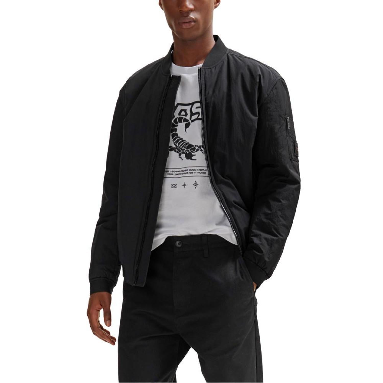 A relaxed-fit jacket with light padding by BOSS Menswear, crafted in a mix of metallic-effect and cotton-touch fabrics with a water-repellent finish. The model is a size 32R and is 6'2" tall with a, 38" chest, 29" waist and 36" hips Relaxed fit Standard length Fit back length- 27" Polyamide, Cotton Machine Washable Imported