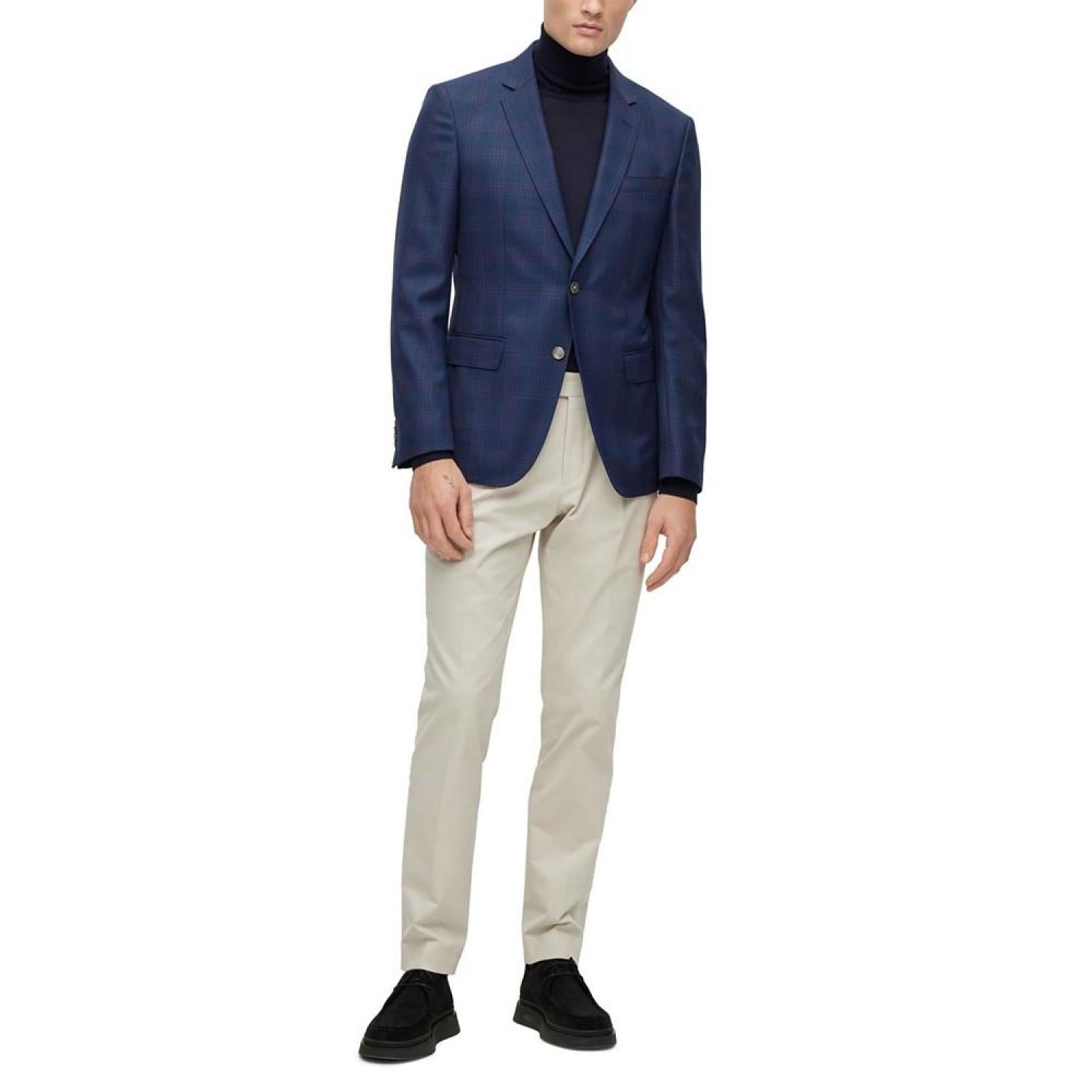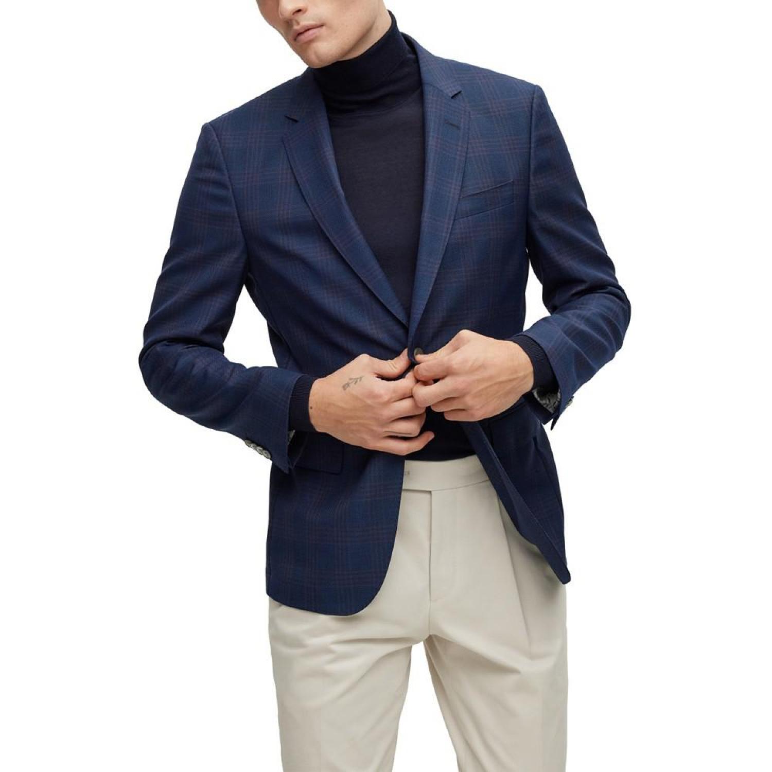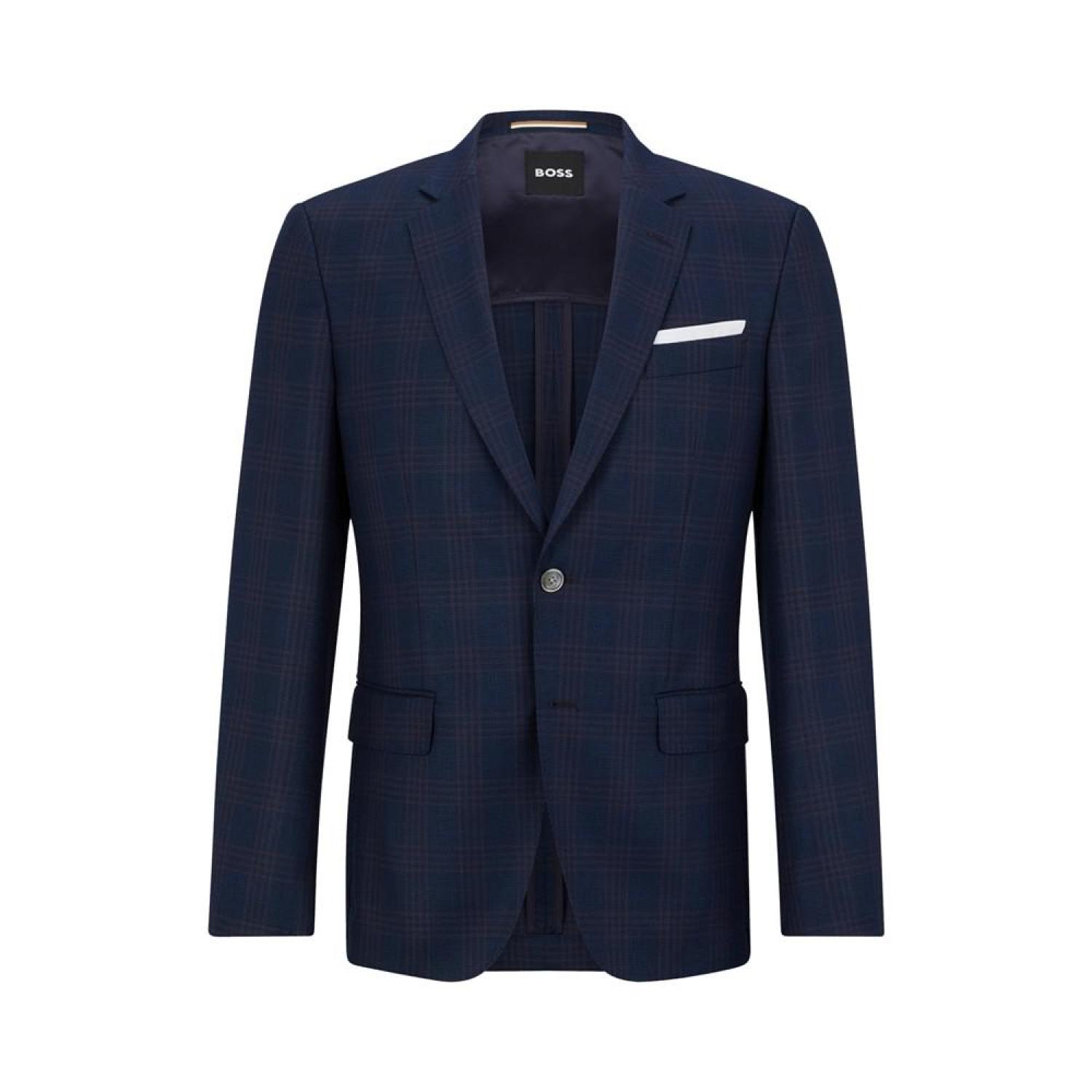 A single-breasted jacket cut to a defined fit in checked virgin wool by BOSS Menswear. Slim fit Notch lapels Fastening top- Button closure Number of buttons- 2 Welt chest pockets Pockets top- Flap pockets The model is a size 32R and is 6'2" tall with a 38" chest, 29" waist and 36" hips Wool Machine Washable Imported