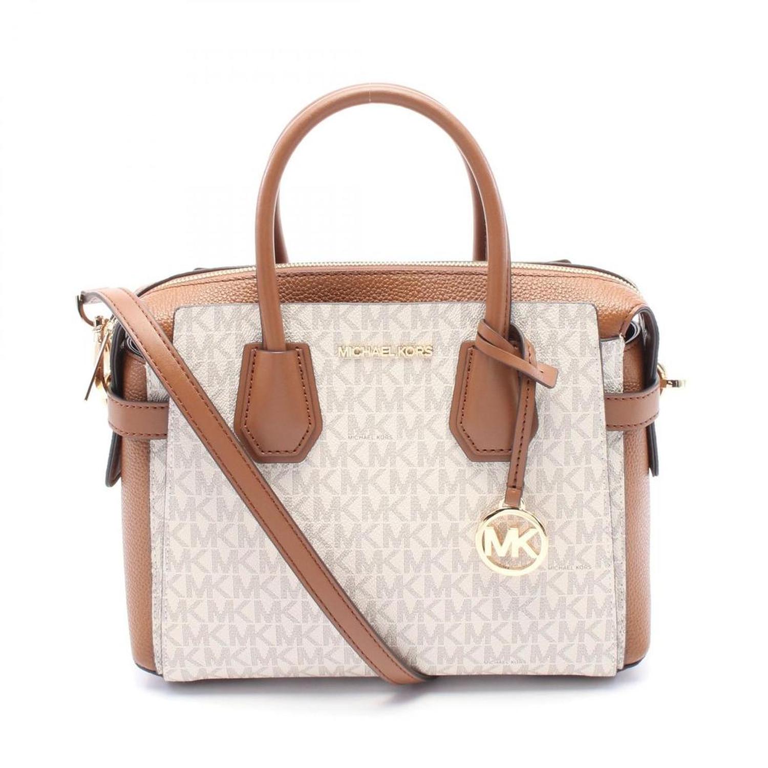 Brand Name Michael Kors; Condition Very Good; Category Bag; SubCategory Handbag; Product Name Michael Kors Mercer Top Zip Satchel Handbag; Style Ladies; Accessories Shoulder Strap,Dust Bag; Height (cm) 21; Width (cm) 11; Length (cm) 27; Color White; Material PVC coated canvas × leather ; Measurements - width - 110 mm length - 270 mm height - 210 mm