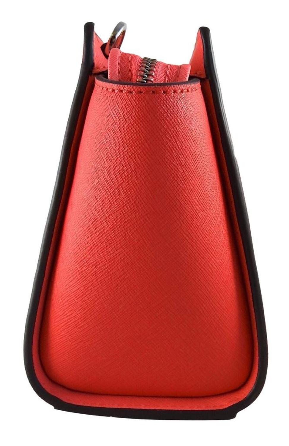 Made of Leather with logo detail on front; Top Zip closure; Front slide pocket; 1 inside zip pocket Adjustable cross body 22-24 Inches drop Silver hardware Measurements - Length - 9 x Height - 6 x Width - 4 Inches Comes with original tags