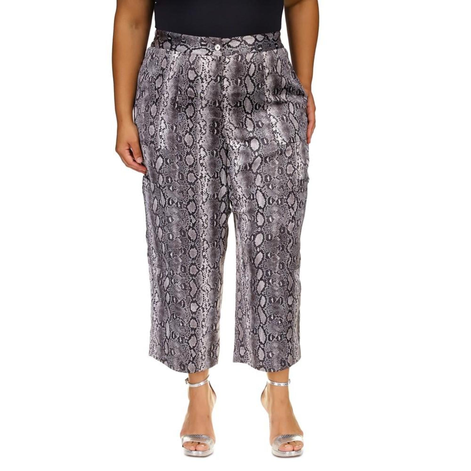 MICHAEL Plus Size Adder Snakeskin-Print Cropped Cargo Pants