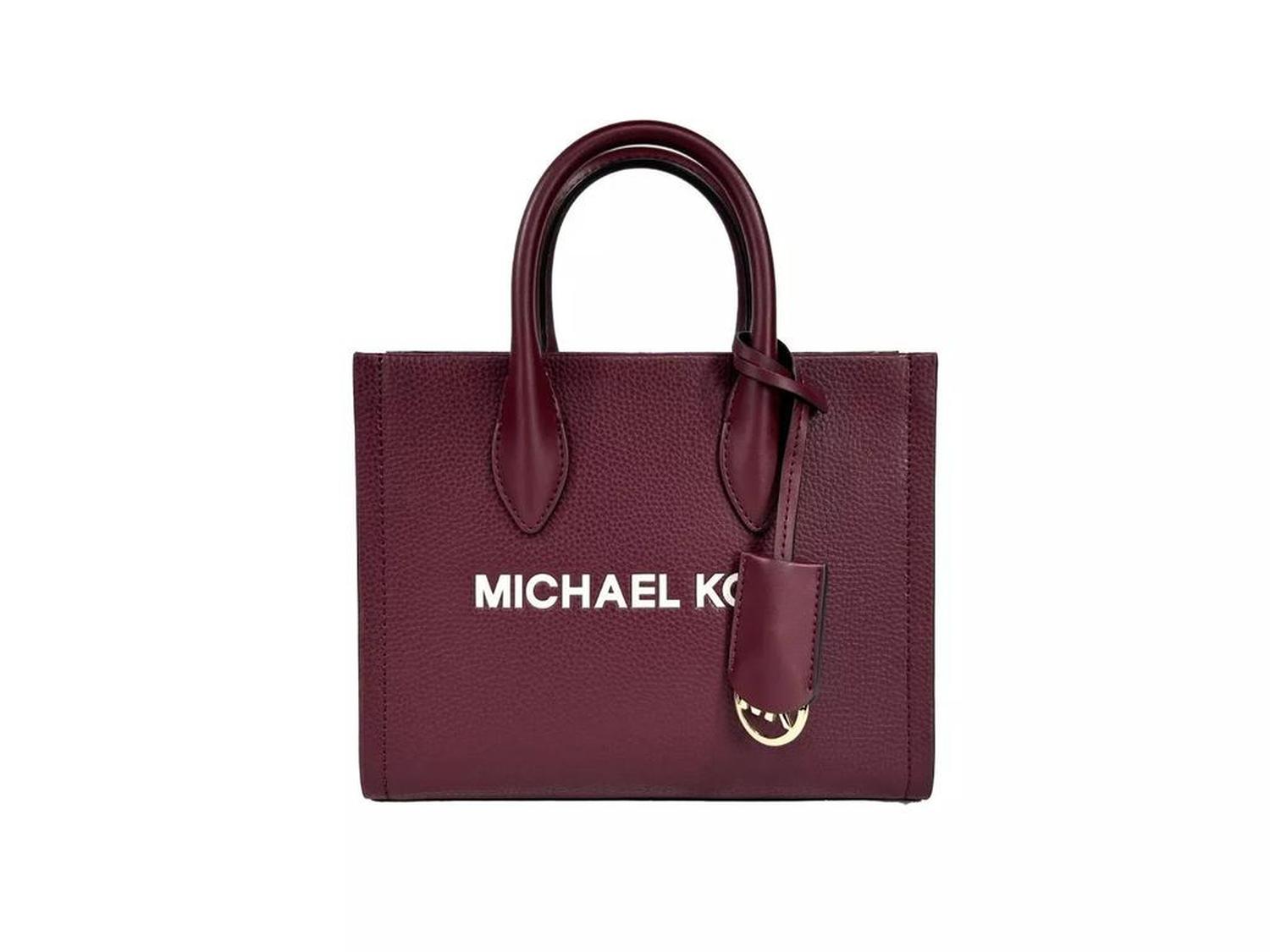 Style - Michael Kors Mirella Small Top Zip Shopper Tote Crossbody Bag (Maroon)Material - PVC / LeatherFeatures - Adjustable/Detachable Crossbody Strap, Inner Zip and Slip Pockets, Jacquard Lining, Zip ClosureMeasures - 24.13 cm W x 19.05 cm H x 8.89 cm D Size - One Size