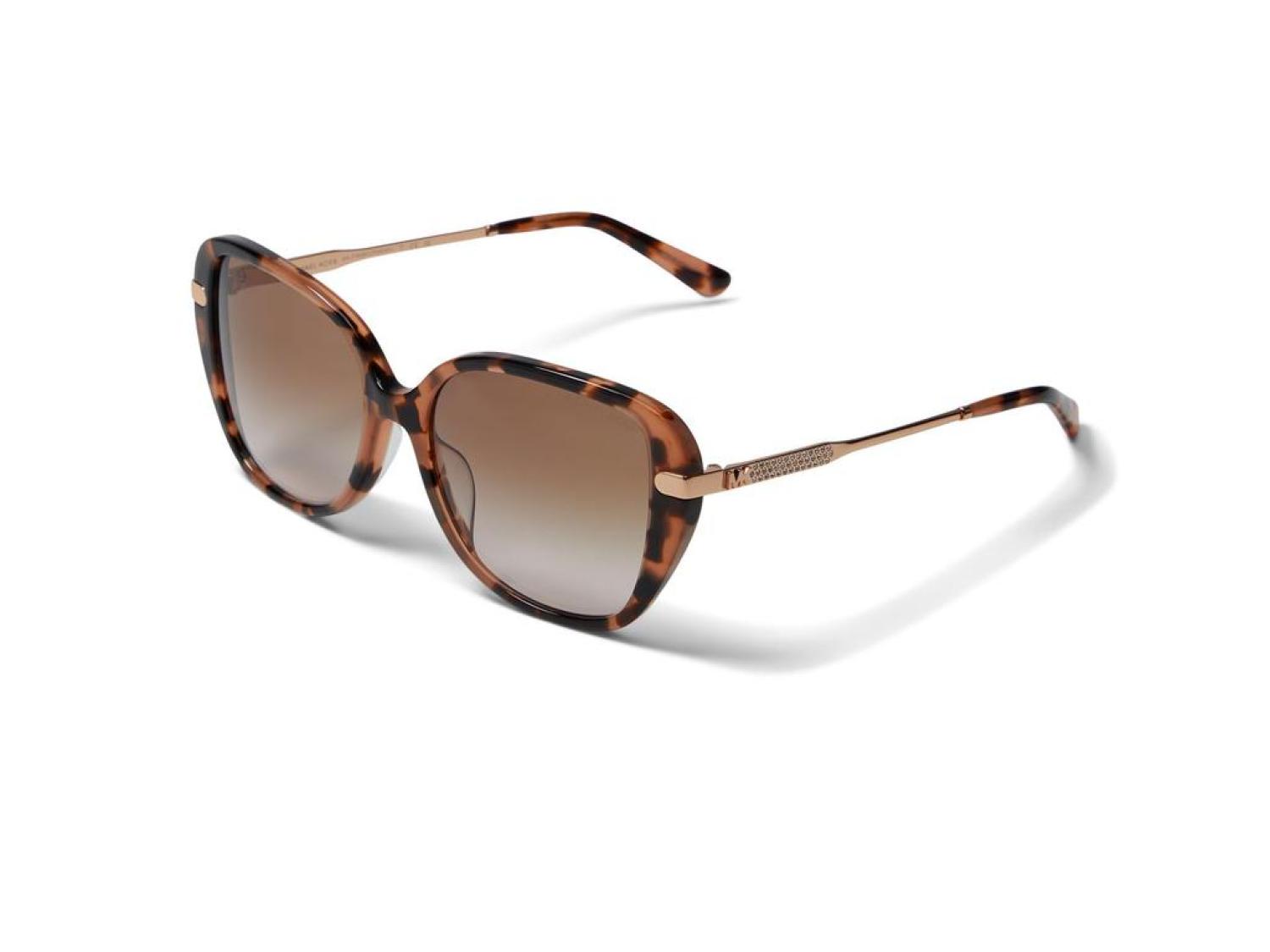 A flattering sleek temple design and a square-shaped frame accentuate the look of the Michael Kors™ MK2185BU Flatiron Sunglasses. These glasses have a brown and pink gradient lens that adds to the stylish look. The printed frame complements the textured design of the temples.