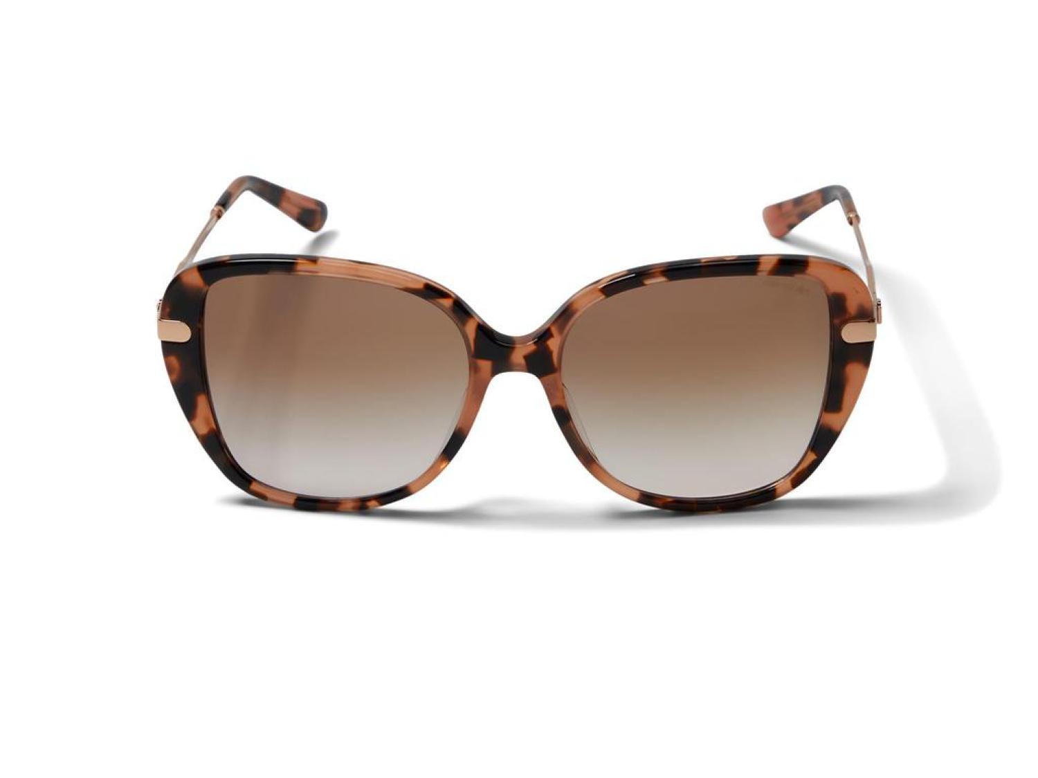 • A flattering sleek temple design and a square-shaped frame accentuate the look of the Michael Kors™ MK2185BU Flatiron Sunglasses. These glasses have a brown and pink gradient lens that adds to the stylish look. The printed frame complements the textured design of the temples.