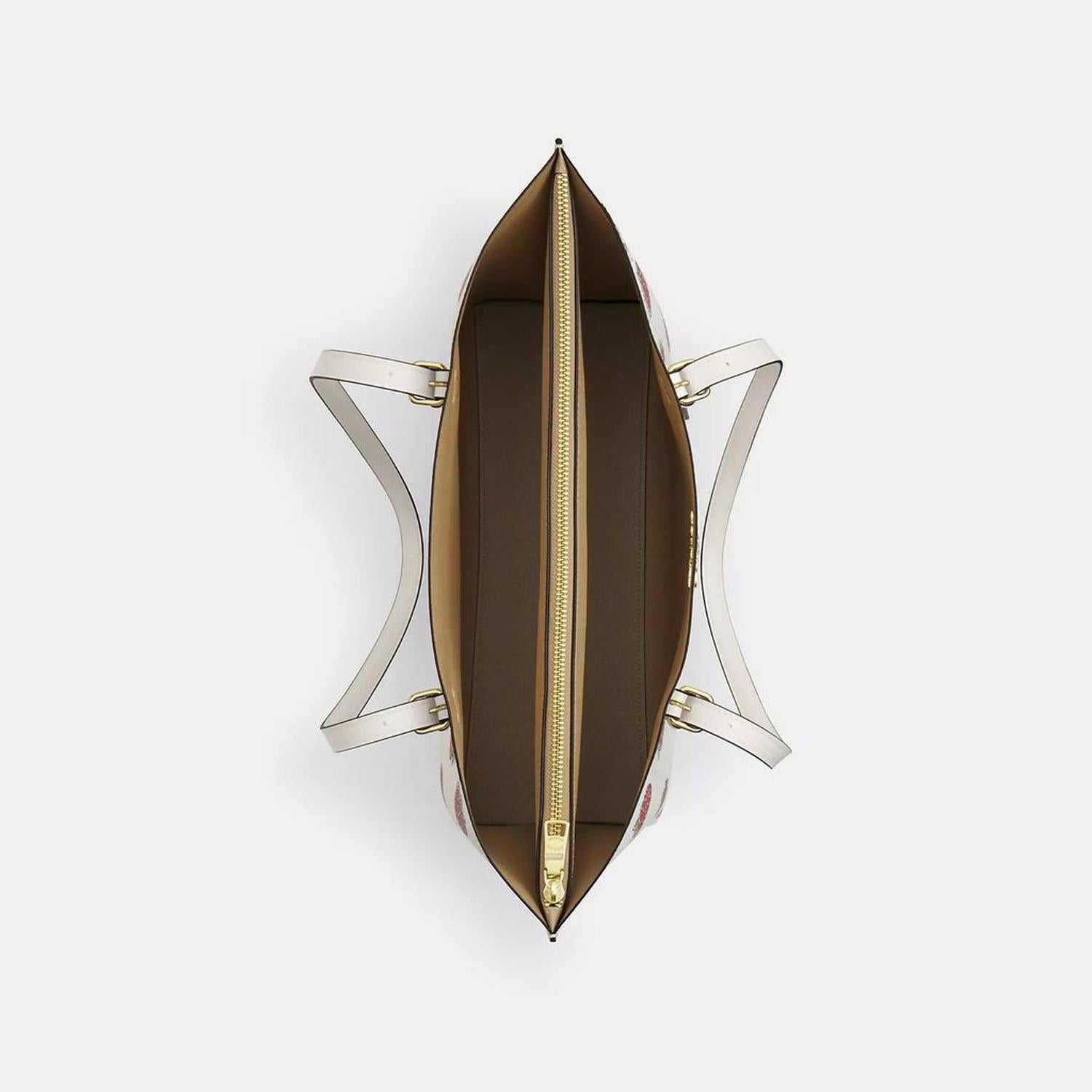 Printed coated canvas Inside multifunction pocket Zip-top closure fabric lining Side open compartments Handles with 10 1/4 drop 13 1/4 (L) x 11 (H) x 5 (W) Style No. CAQ65 | Coach Outlet Mollie Tote Bag With Strawberry Print - Red