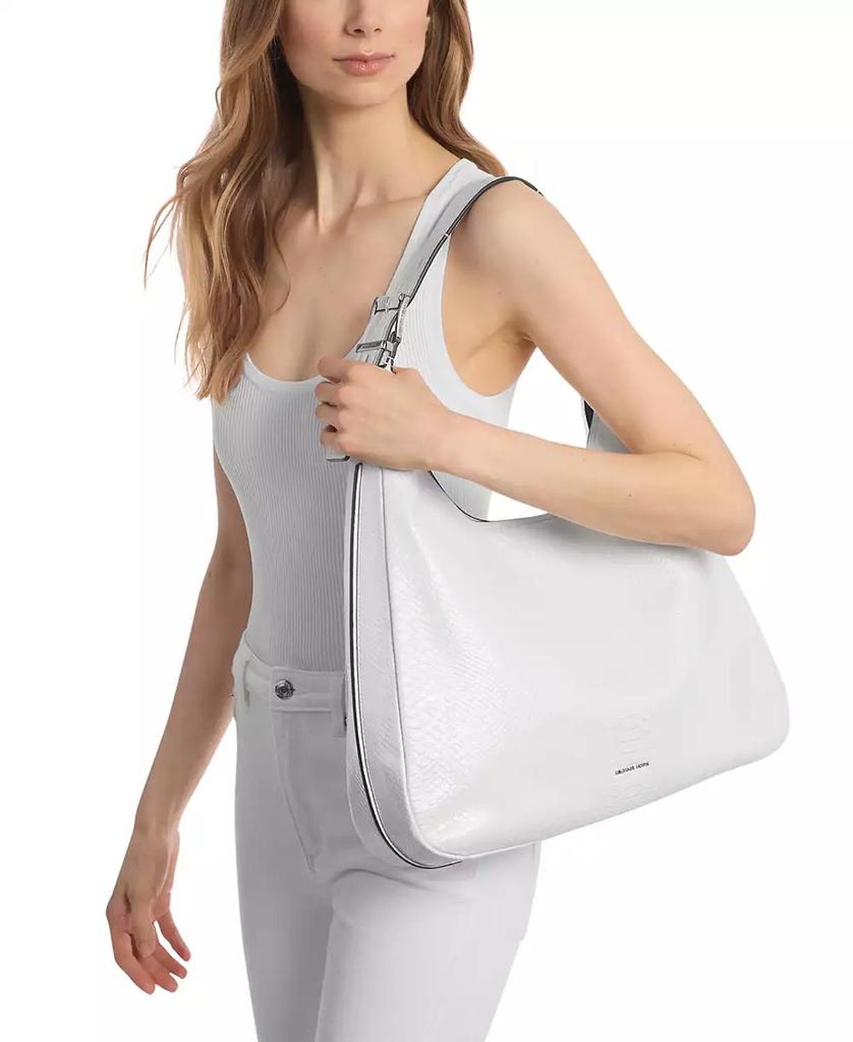 • Elevate everyday style with this MICHAEL Michael Kors leather shoulder bag featuring a textured finish and the signature MK logo in a spacious, versatile design.