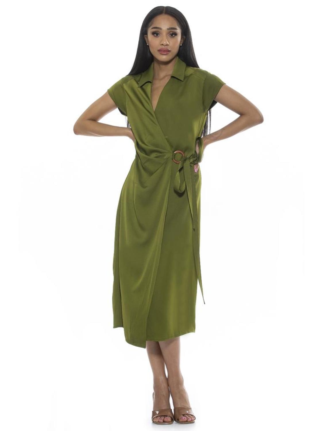 • PRODUCT FEATURES Buckle closure Crossover V-Neckline Short sleeve 100% Polyester Machine Wash Imported Style D4035