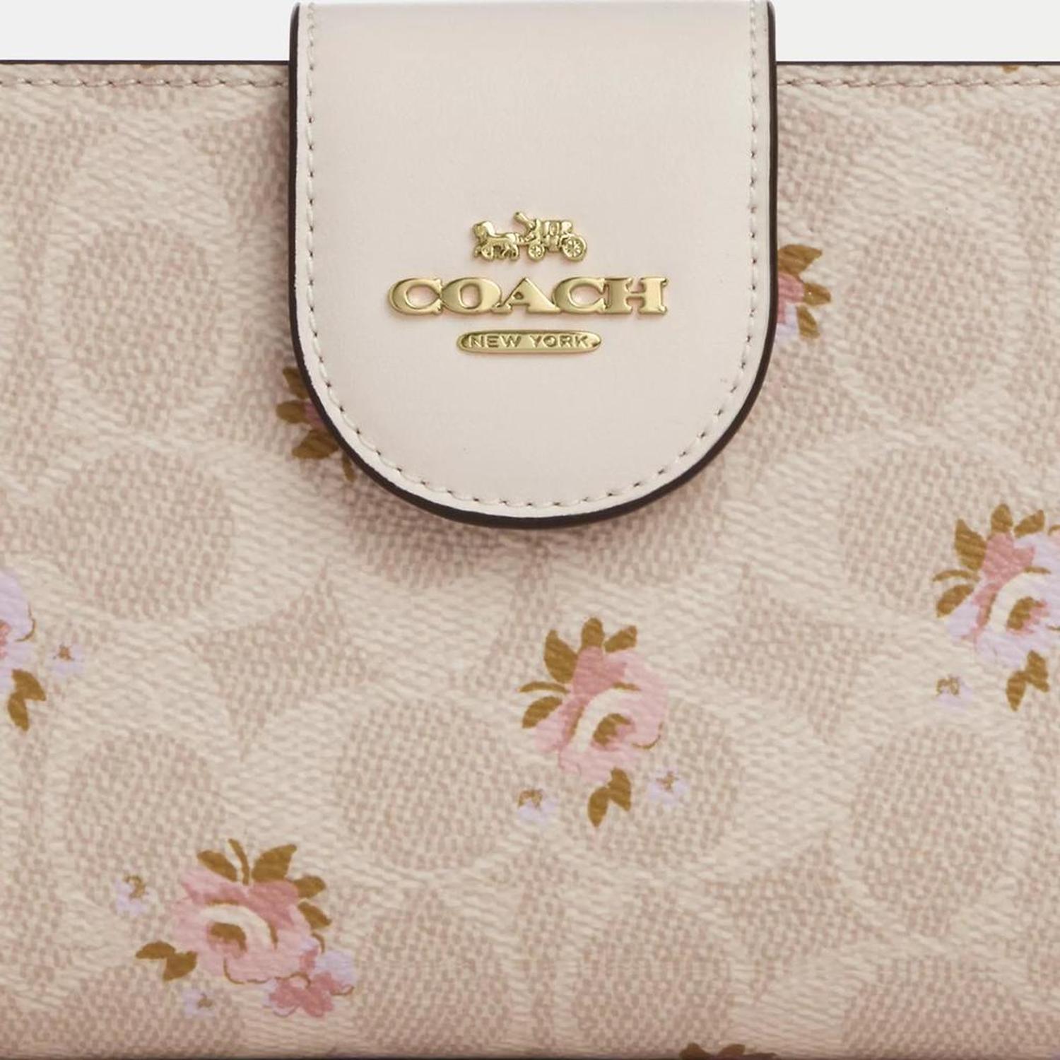 • Signature coated canvas Six credit card slots ID window Snap phone compartment Snap closure Outside zip pocket Attached wrist strap 7 1/4 (L) x 4 1/2 (H) Fits all iPhone and Samsung Galaxy phones Style No. CAR11 | Coach Outlet Phone Wallet In Signature Canvas With Floral Print - Beige