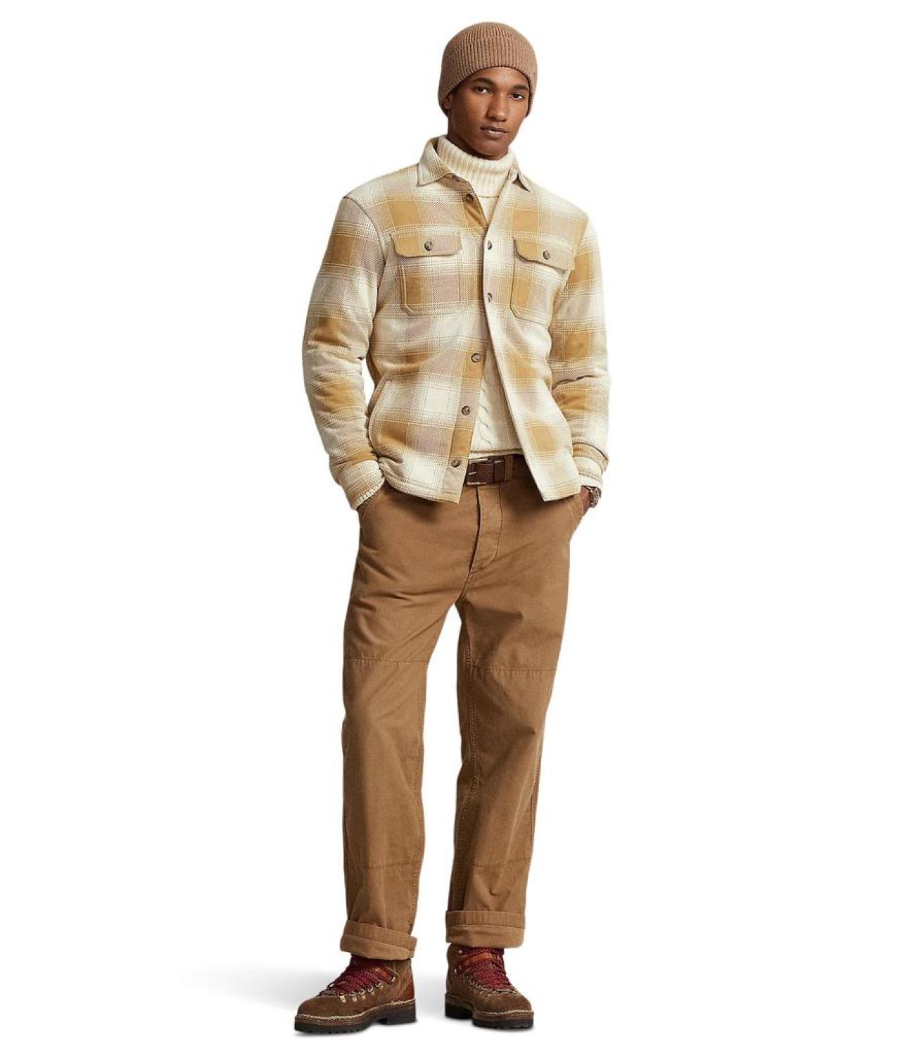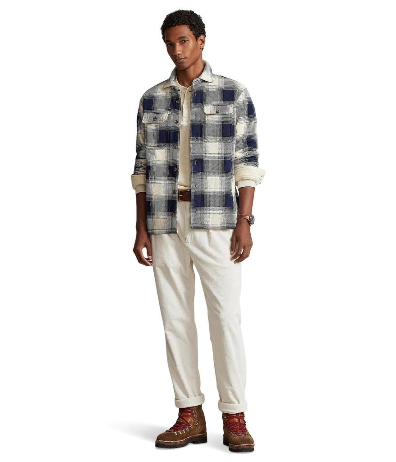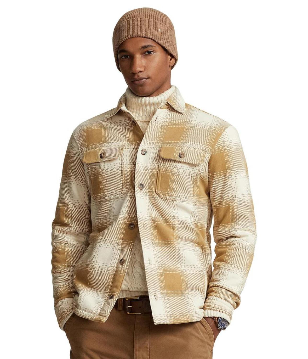 Go full lumberjack-chic with the Polo Ralph Lauren® Plaid Fleece Shirt Jacket! Snap-front design features point collar, snap flap chest pockets, and side-entry welt pockets. Full-length sleeves with snap cuffs. Logo embroidery at lower left sleeve. 100% cotton;Cuffs and hem: cotton, elastane. Machine washable. Imported. Measurements:• Length: 28½ in.• Chest circumference: 46 in.• Sleeve: 35 in.