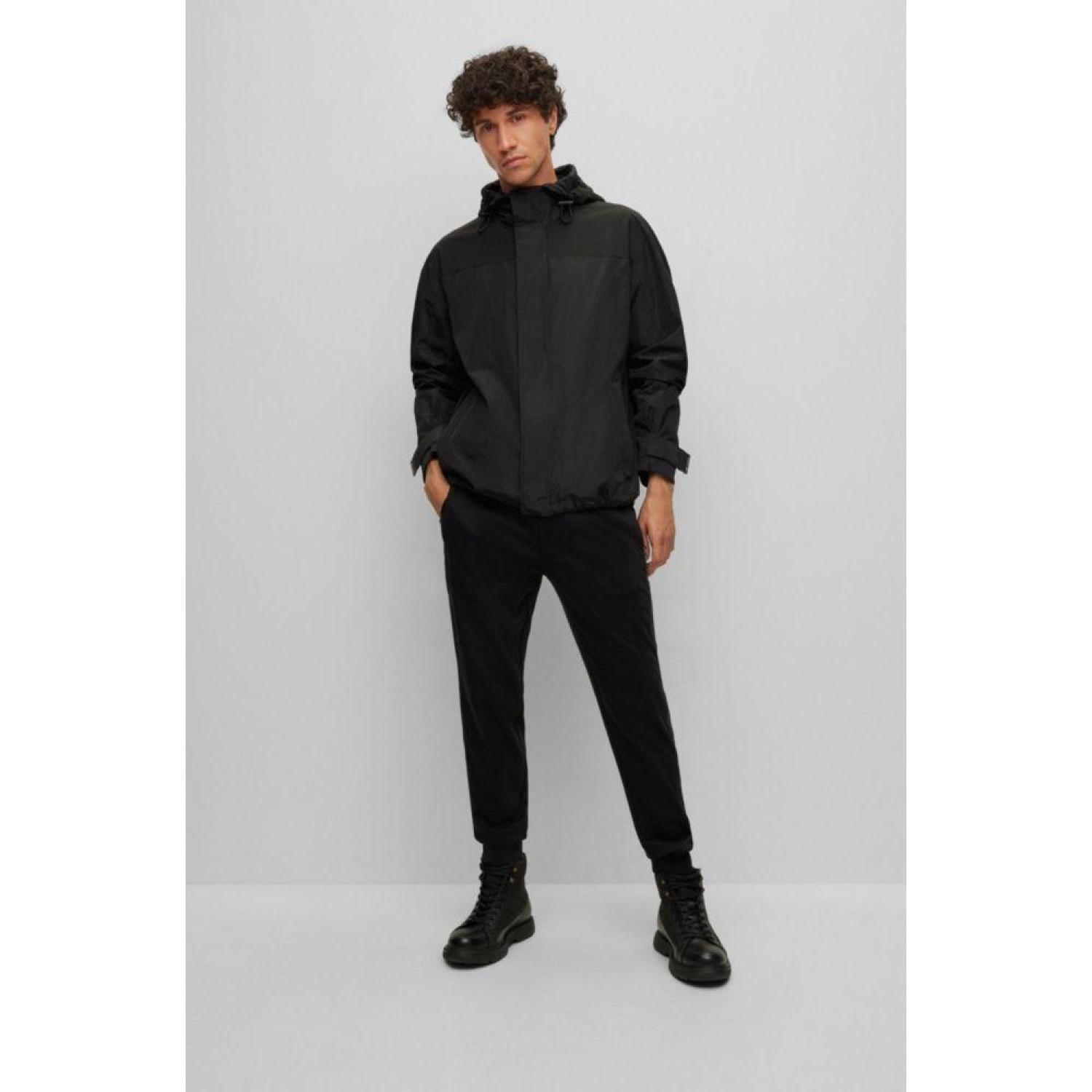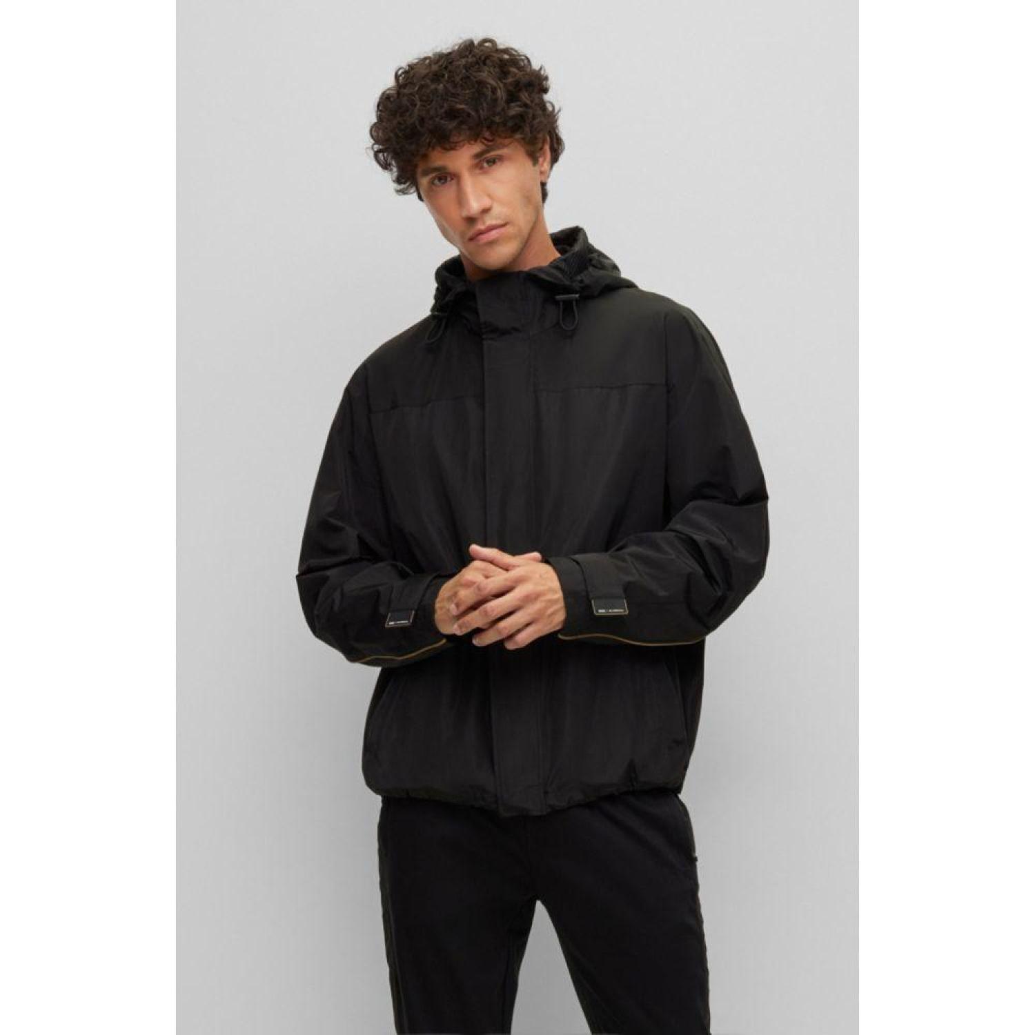 A modern jacket by BOSS Menswear. Featuring collaborative branding at the adjustable cuffs and inner placket, this relaxed-fit jacket is crafted in water-repellent technical material and topped with an adjustable hood. Full lining and a concealed closure add the finishing touches. Part of the Porsche x BOSS collection, with details inspired by the iconic curves of a Porsche sports car.