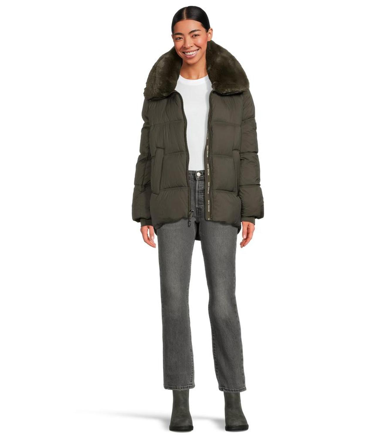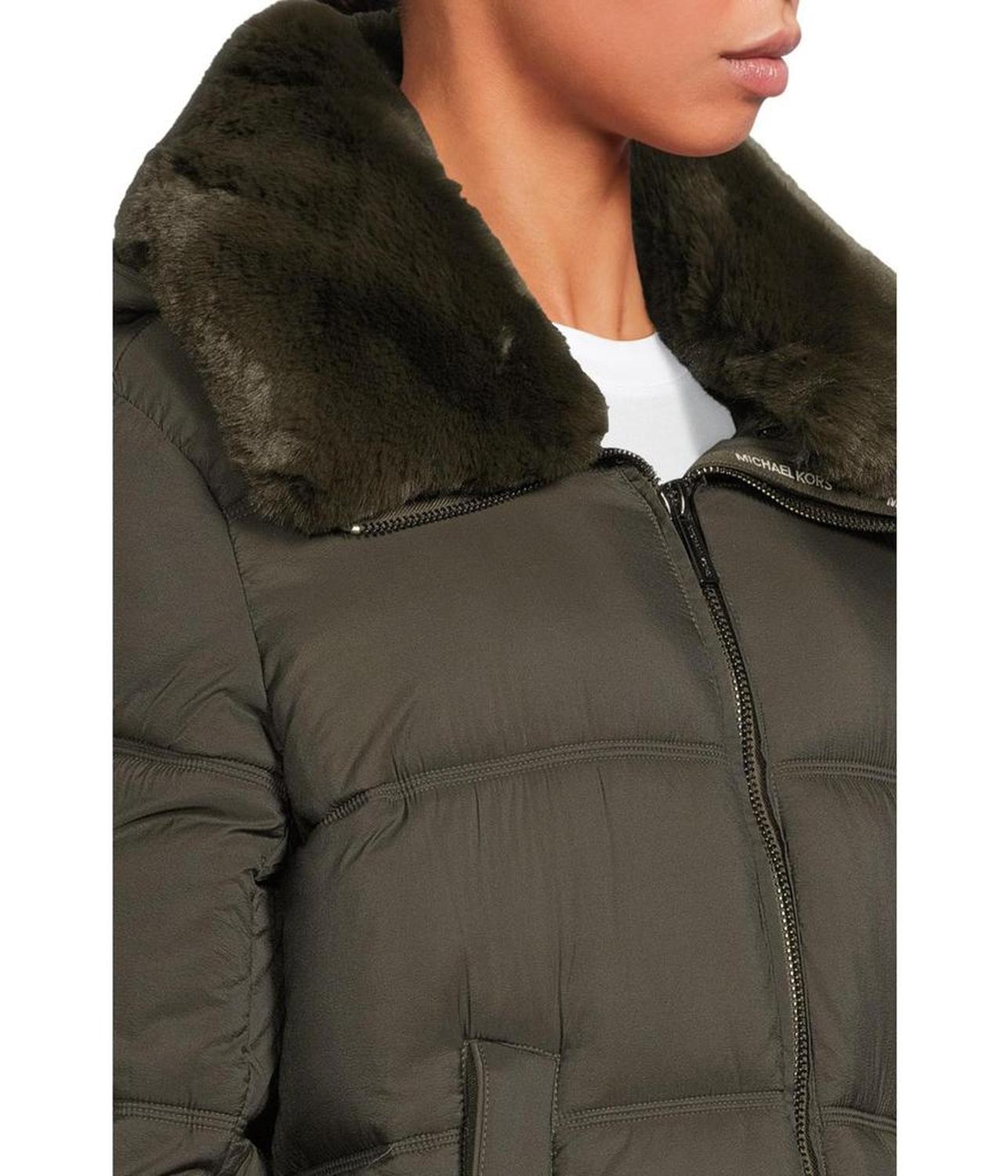 Stay sleek, stay warm, stay unstoppable: Introducing the MICHAEL Michael Kors® Regular Down Jacket M426547B74, the perfect fusion of fashion and function. Designed with a quilted finish that feels as luxe as it looks, this down jacket keeps you insulated without the bulk. The zippered front closure offers ease and versatility, while the long sleeves and collared neck enhance its timeless silhouette. A detachable zippered hood and button-off faux fur collar let you switch up your look depending on the day, mood, or weather. Practical details like two zippered waist pockets and a chic side slit with a zipper add both convenience and flair, ensuring your essentials stay secure and your style stays sharp. 100% nylon. Machine washable. Imported.