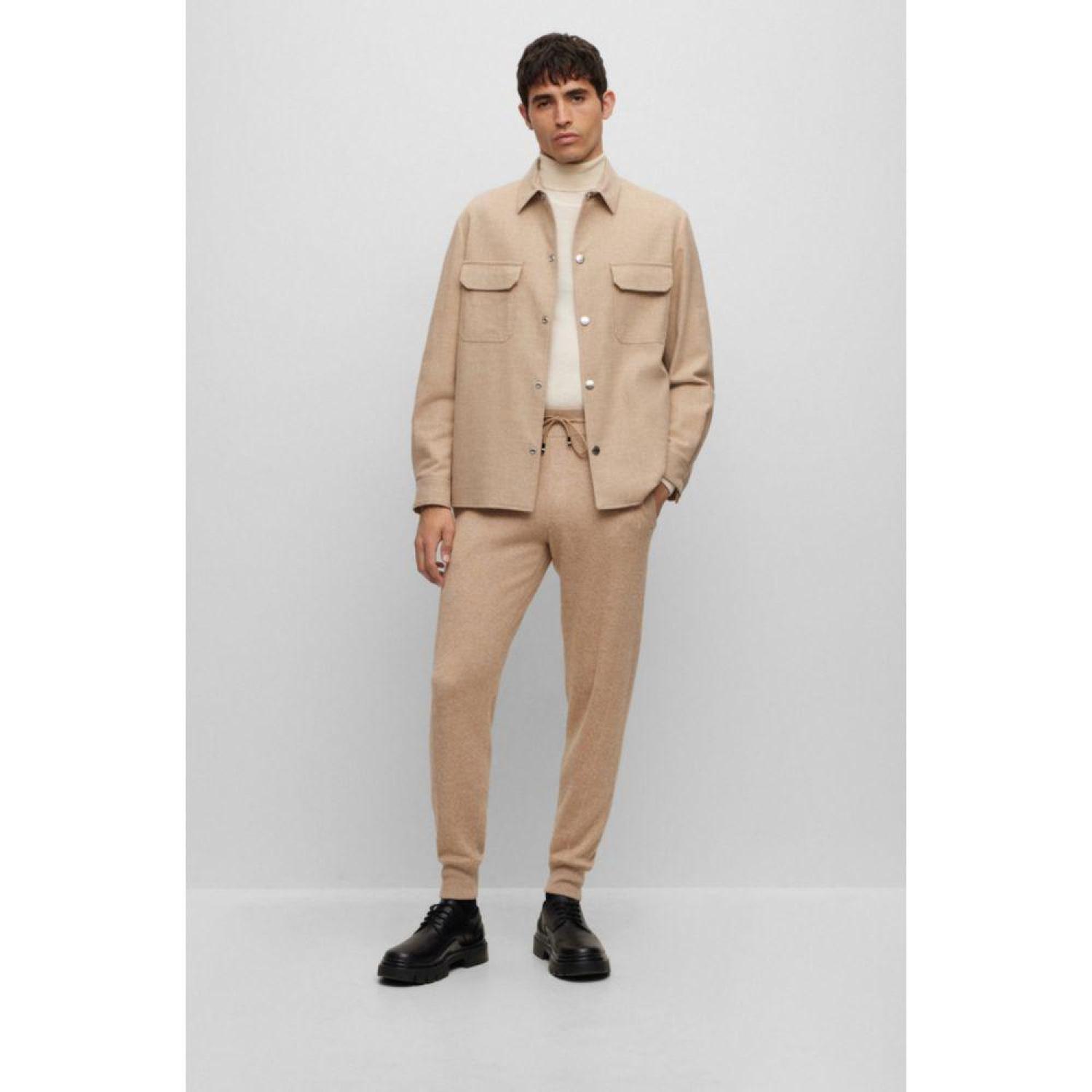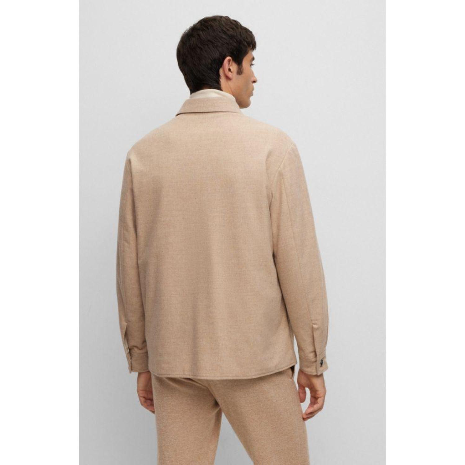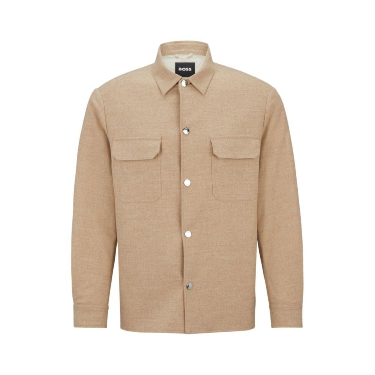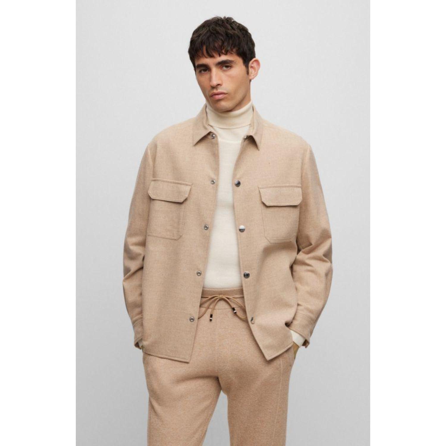 A relaxed-fit overshirt featuring branded press studs by BOSS Menswear, crafted in stretch fabric blended with wool.