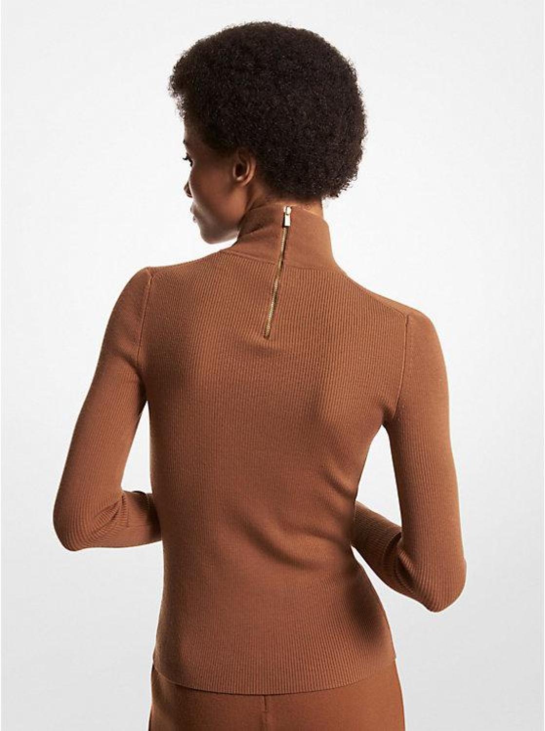 Ribbed Stretch Merino Wool Turtleneck Sweater