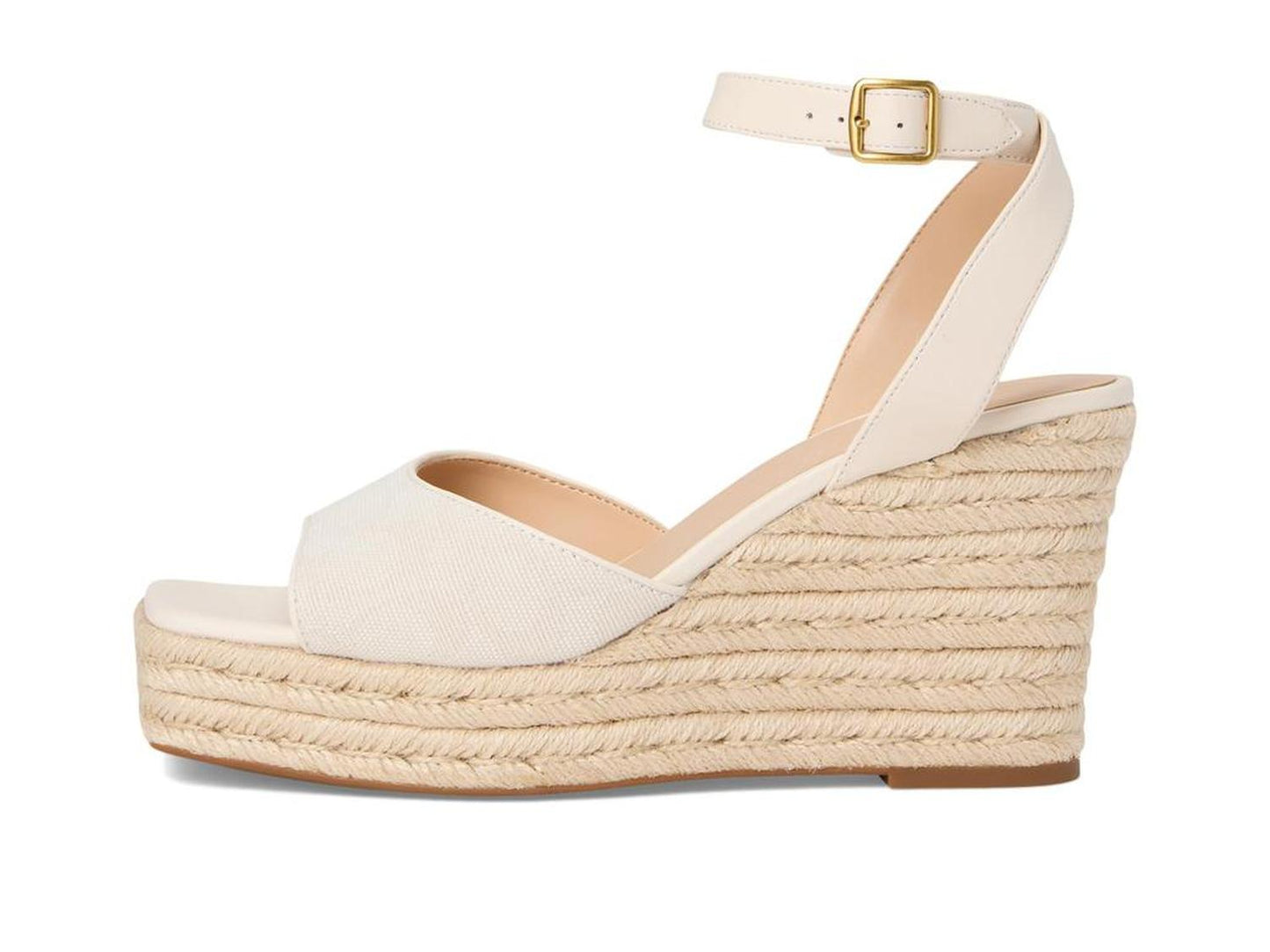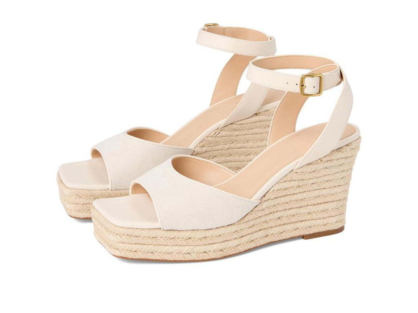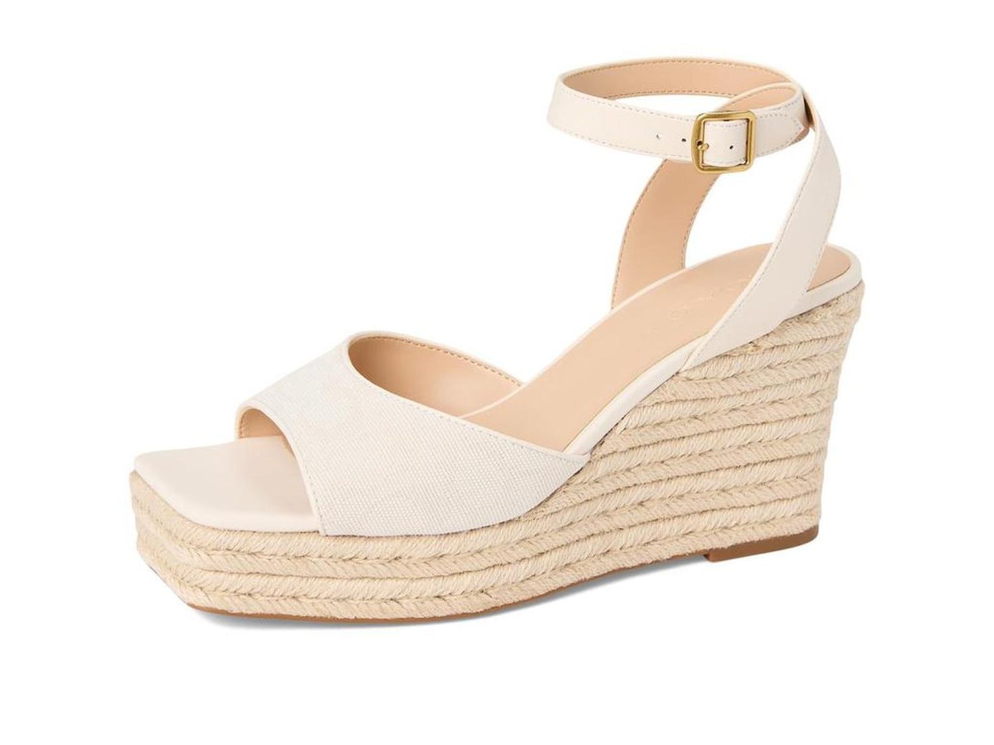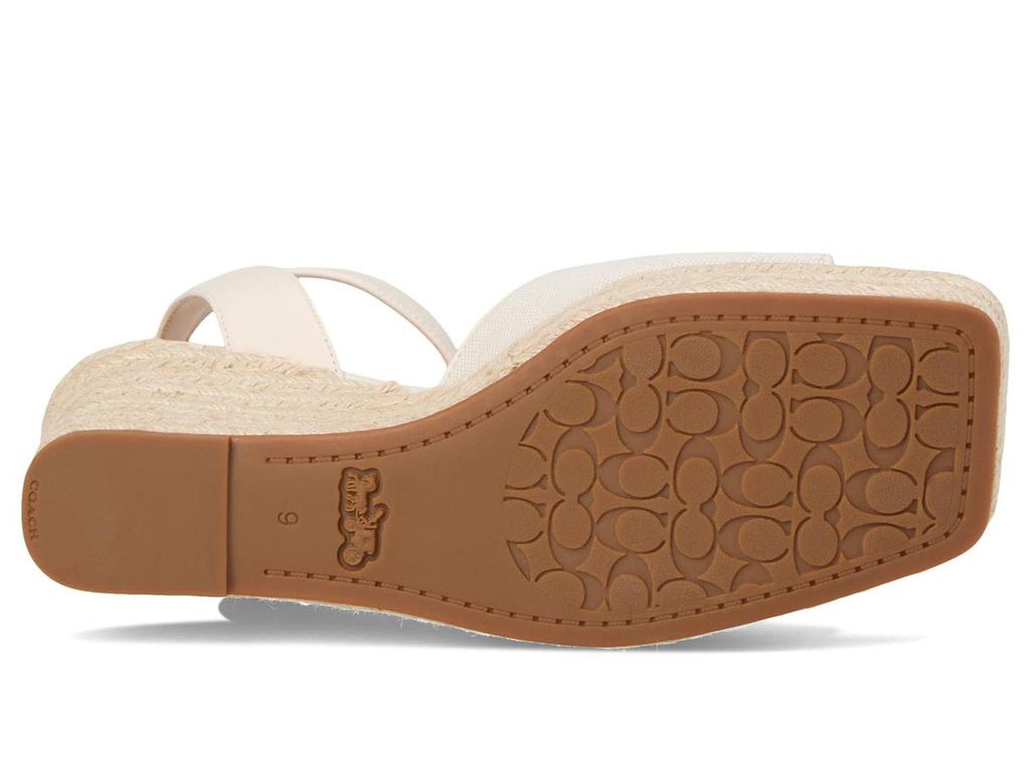 Let grace meet height wearing the COACH® Signature C Espadrille Wedge. Crafted from signature jacquard and leather upper, faux leather lining, and rubber insole, this pair of sandals features open square toe, ankle strap, buckle closure, wedge heel, and brand detailing on the footbed.