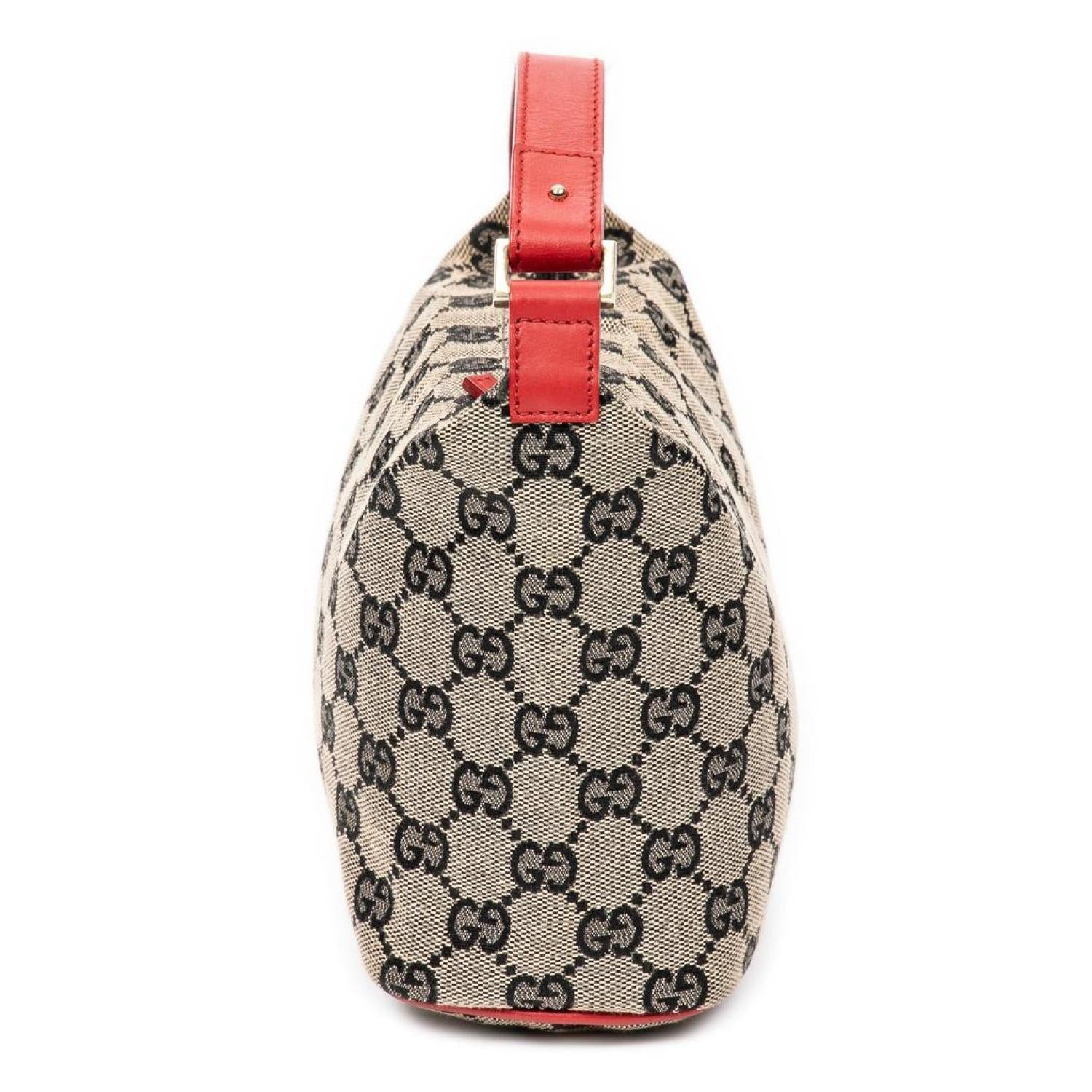 Gucci Handbag in Beige/Red Monogrammed Canvas and Gold hardware. Dimensions - 15*12*7cm. Serial number - 039-1147-002122. Inclusions - None.