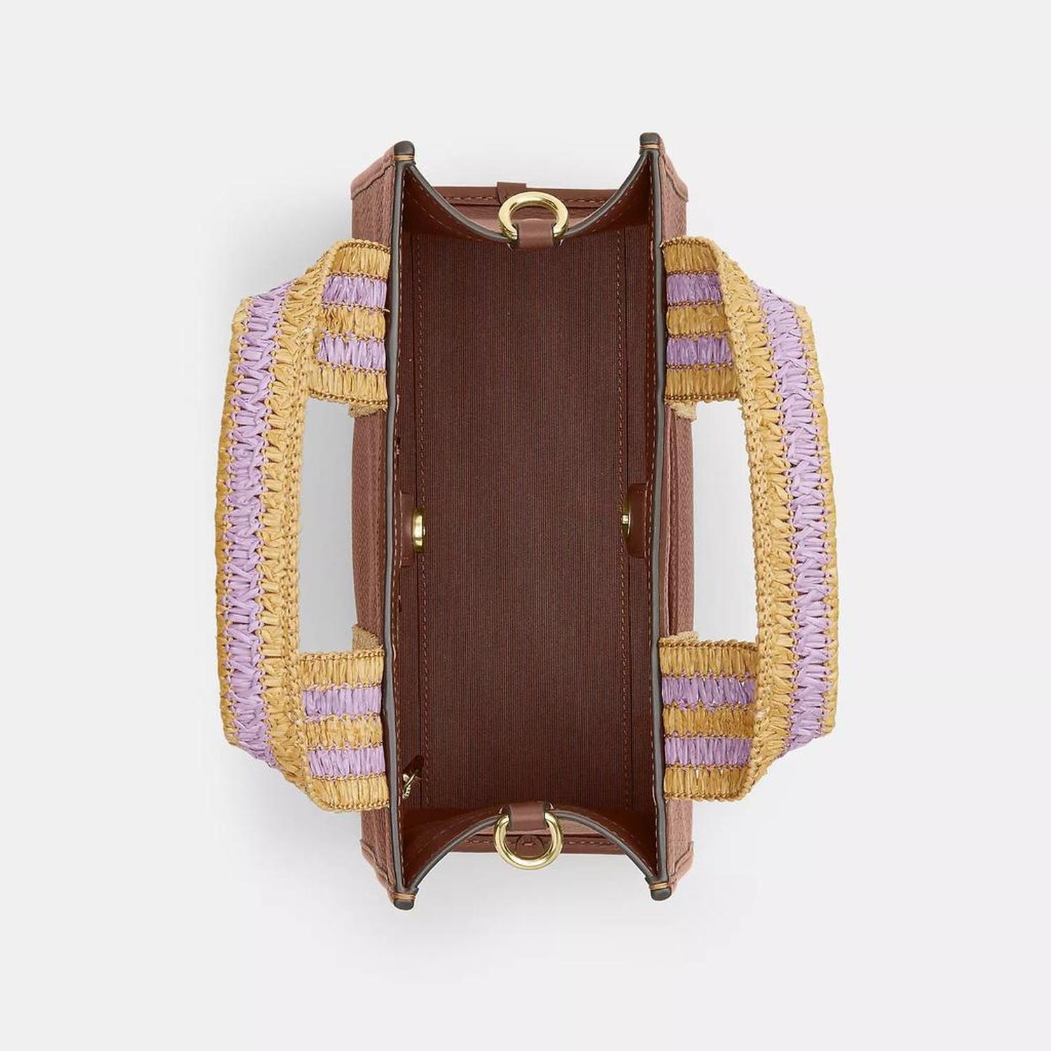 Refined pebble leather and straw webbing Inside zip and multifunction pockets Handles with 3 3/4 drop Outside open pocket Detachable strap with 21 3/4 drop for shoulder or crossbody wear 9 1/2 (L) x 7 (H) x 4 1/2 (W) Style No. CBG91 | Coach Outlet Smith Tote Bag 24 - Brown