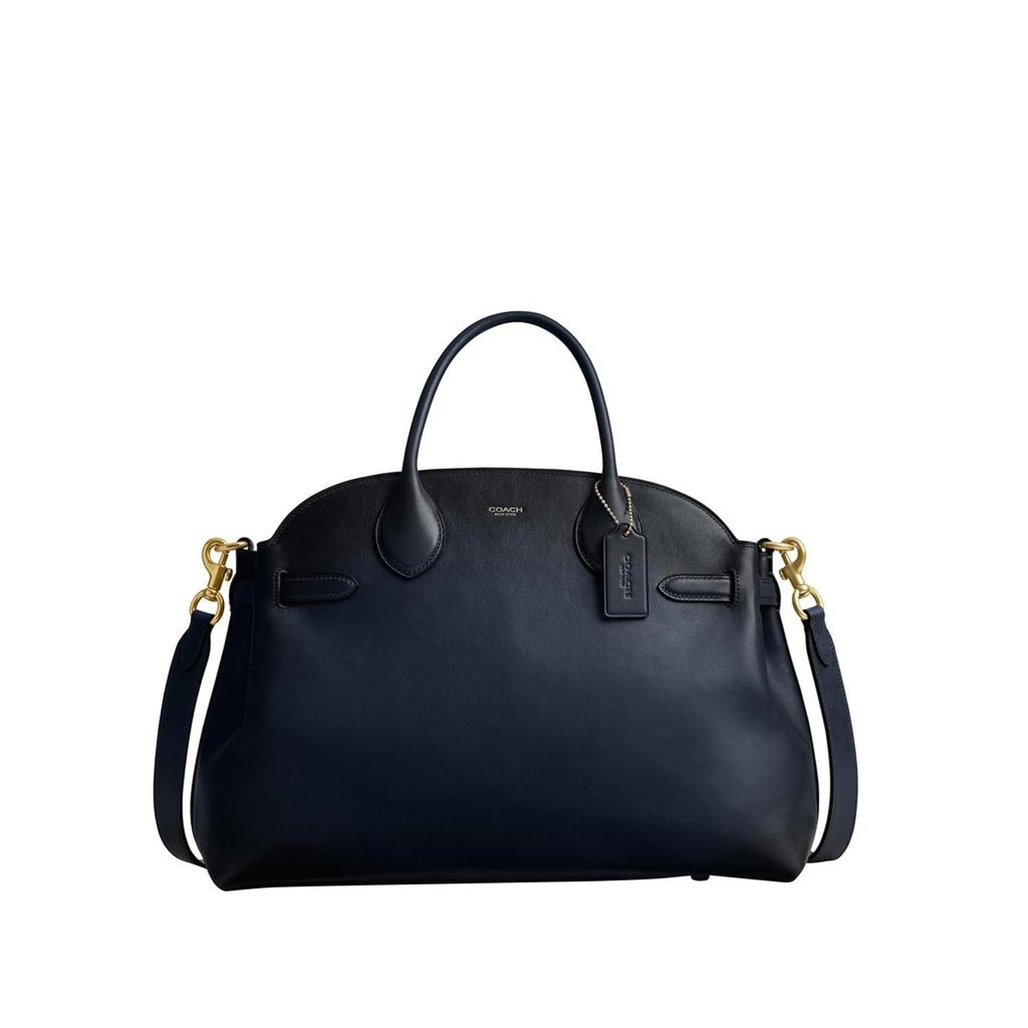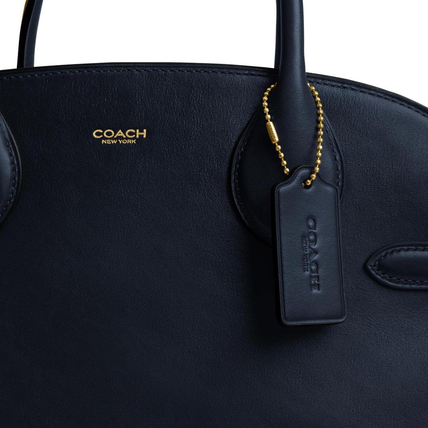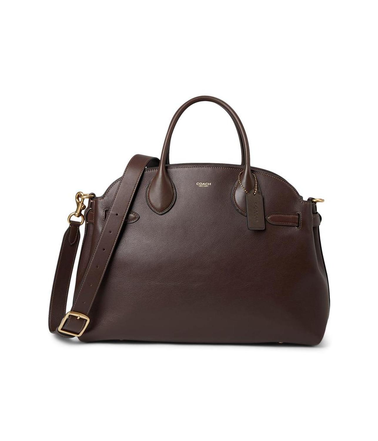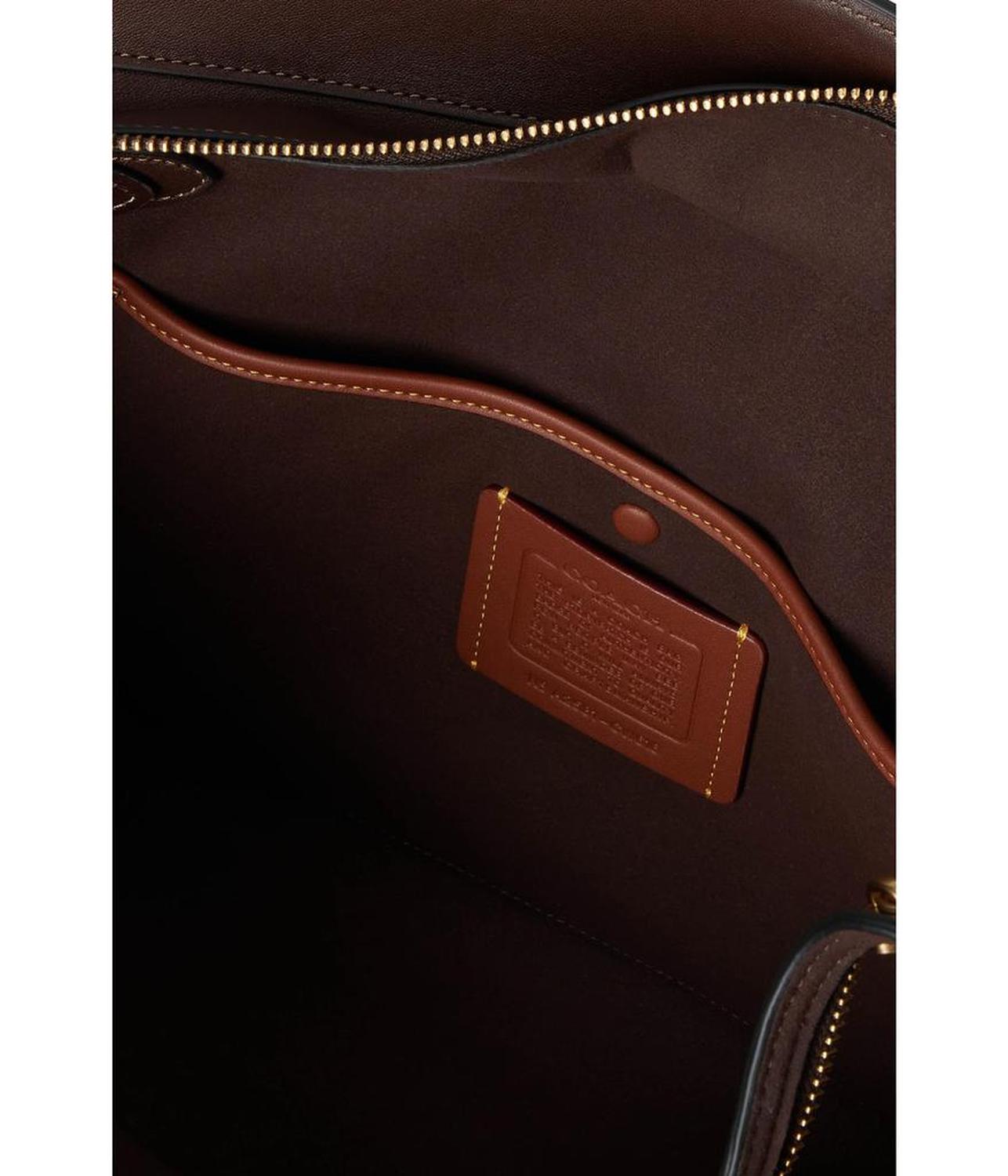 Made from natural grain leather, the COACH™ Soft Empire Carryall Bag 40 is an ideal choice to travel with style. This shoulder purse comes with a zippered top closure and four protective feet at the base. The dual top handles and a detachable strap offer shoulder or crossbody wear. For additional storage, this leather purse comes with an inside snap pocket and can fit a 13" laptop.