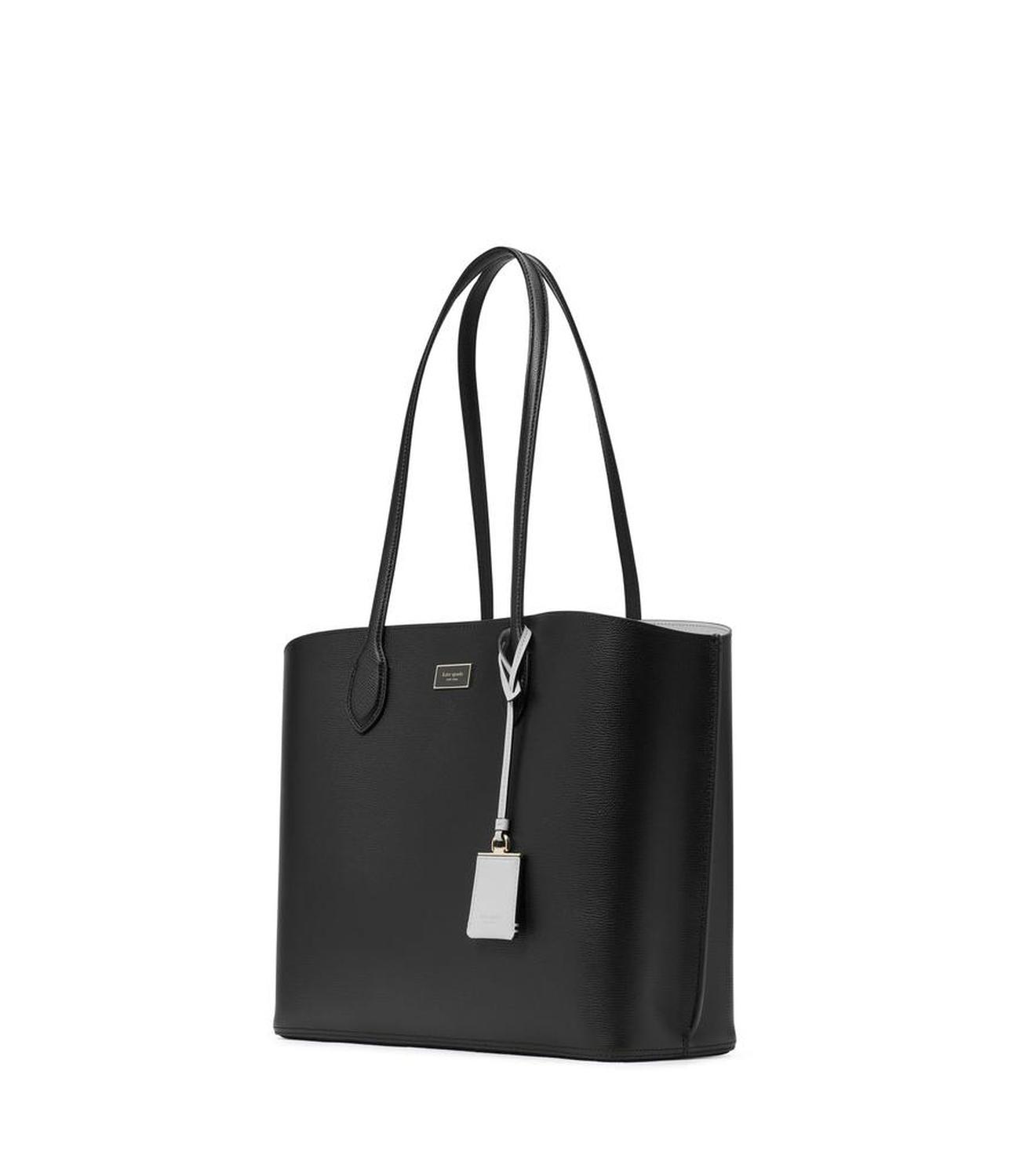 Define your statement look carrying the Kate Spade New York® Suite Work Tote Bag. Crafted from leather, this bag features two shoulder straps, magnetic snap closure, inside slip pocket, interior zippered compartment, fits phone, ipad, pinmount logo on the front, and detachable key chain. Leather lining. Imported. Please note, the hardware color and interior lining may differ from the color shown in the photo.