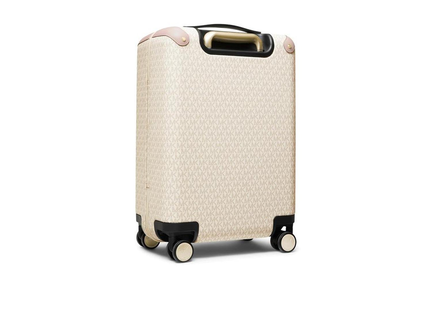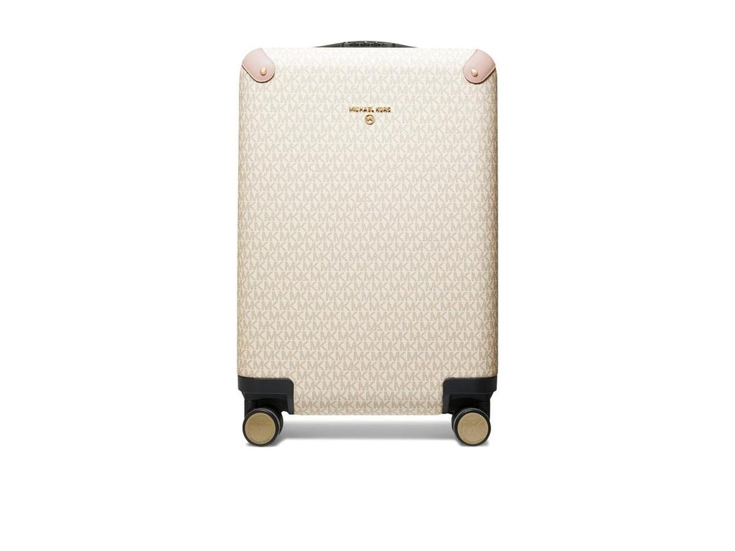 • Travel with confidence and pride with the MICHAEL Michael Kors® Travel Small Hardcase Trolley Bag, featuring a MK® logo hardware in the front with spinner wheels and adjustable handle for added functionality. The zipper closure and organizational pockets and two organizational pockets inside allow hassle-free storage.