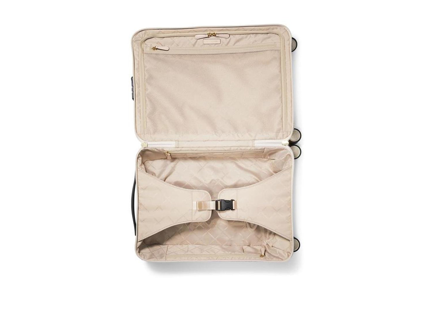 Travel with confidence and pride with the MICHAEL Michael Kors® Travel Small Hardcase Trolley Bag, featuring a MK® logo hardware in the front with spinner wheels and adjustable handle for added functionality. The zipper closure and organizational pockets and two organizational pockets inside allow hassle-free storage.