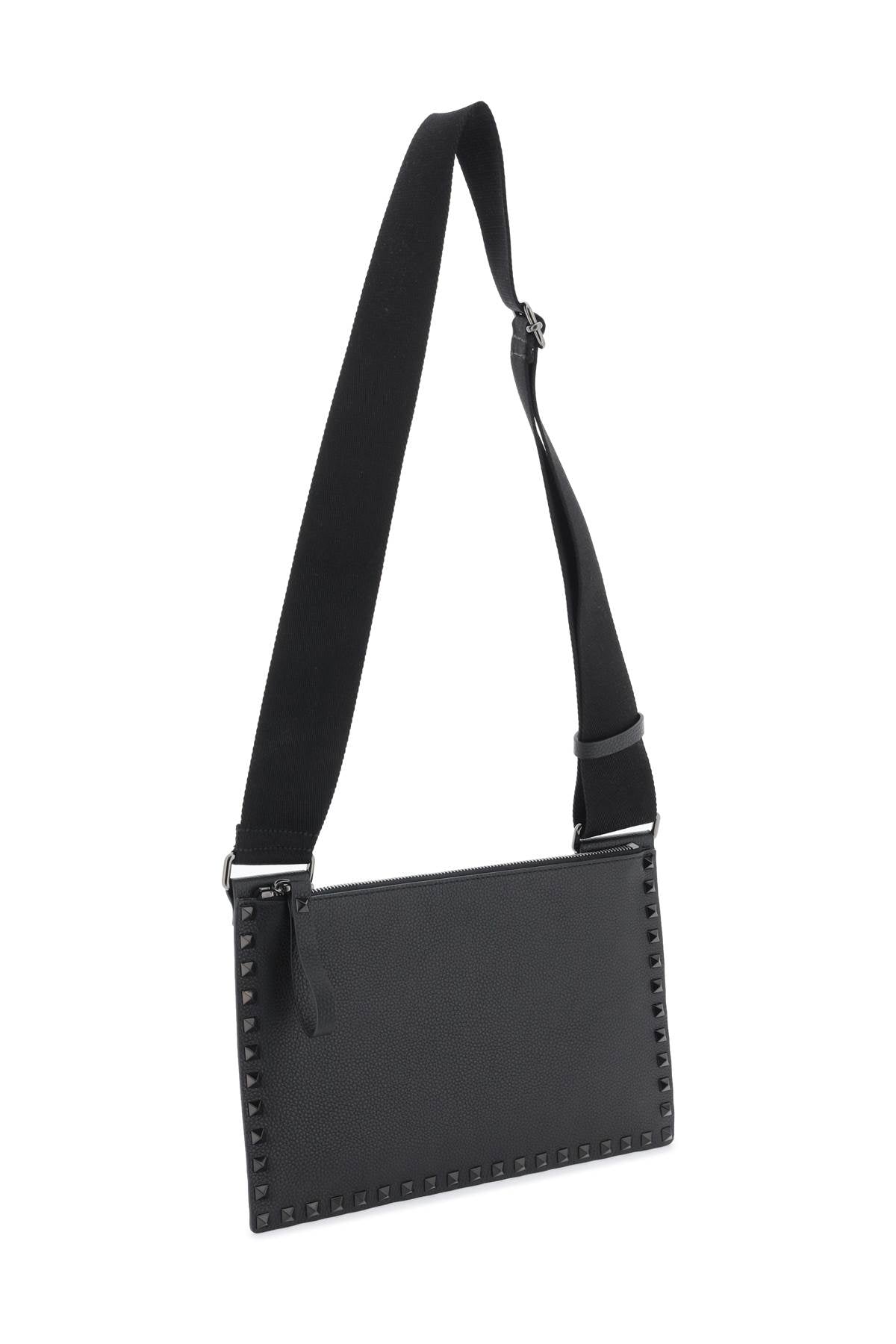 Rockstud flat crossbody bag by Valentino Garavani made of soft grained leather and embellished with iconic tone-on-tone studs along the edges. Zipper closure, leather interior with one open pocket and adjustable webbed shoulder strap. Metal hardware with ruthenium finish. Bag Length = 29 cm, Bag Height = 18 cm, Shoulder Bag Length = 87 cm,
