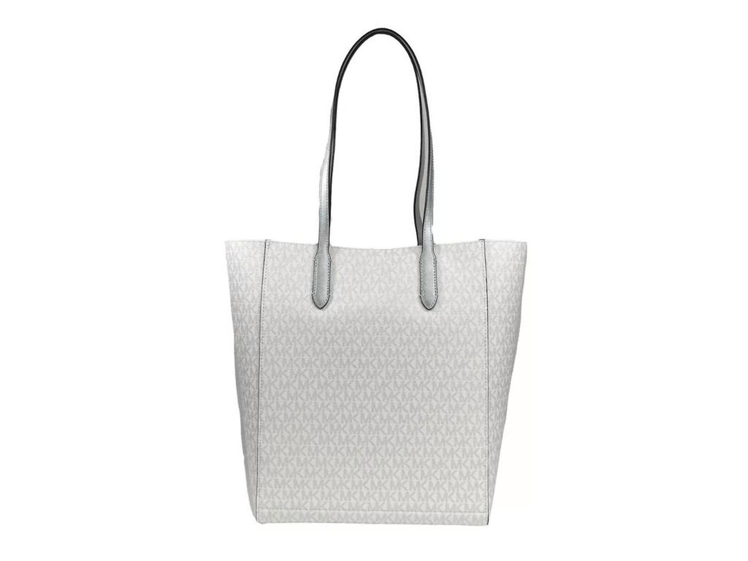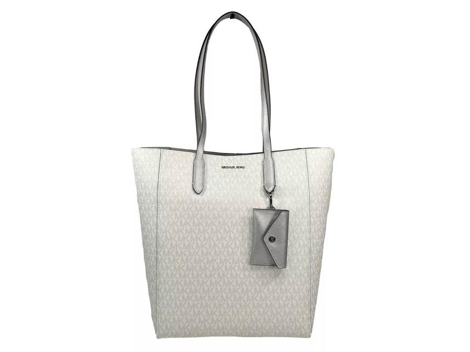 The perfect throw-it-in-and-go bag for your next weekend away or beach vacation! Its classic design will never go out of style and you'll be reaching for this bag season after season.Meet the Women's Vincent Tote Purse Bag by Michael Kors, a sophisticated accessory in sleek silver that combines style with functionality. Crafted from leather and PVC, it features silver-tone hardware and an attached card case for added convenience. With dimensions of 27.94 cm width, 35.56 cm height, and 15.24 cm depth, it's designed to accommodate your essentials effortlessly. Enjoy the practicality of inner pockets while complementing your look with this timeless tote.