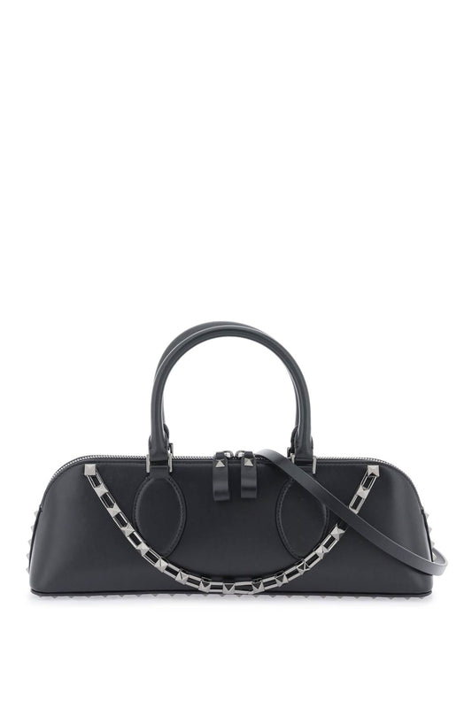 Valentino garavani rockstud23 east-west leather shoulder bag with studs and rhinestones