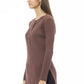 Elevate your wardrobe with Alpha Studio’s Crew-neck Sweater, a balance of sophistication and modern edge. The chic side slits accentuate your form while the unique button closure adds a touch of character that promises to turn heads. Meticulously crafted in Italy, this piece is a triumph of style and comfort, blending viscose, polyamide, and polyester for a luxurious feel.