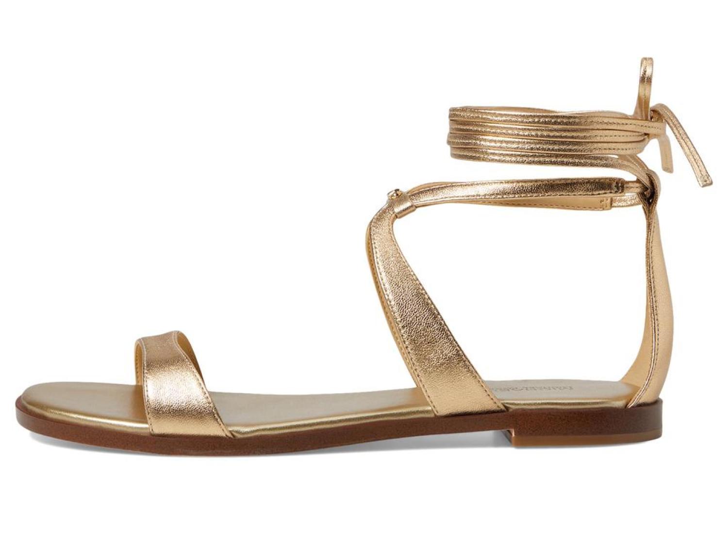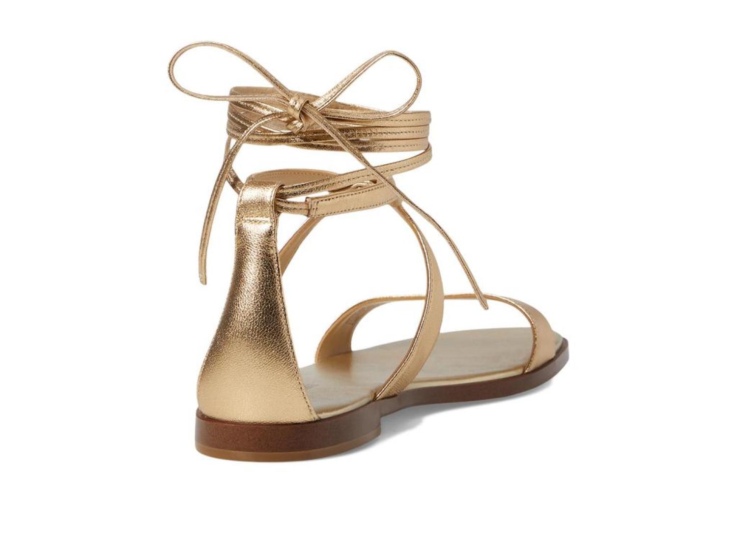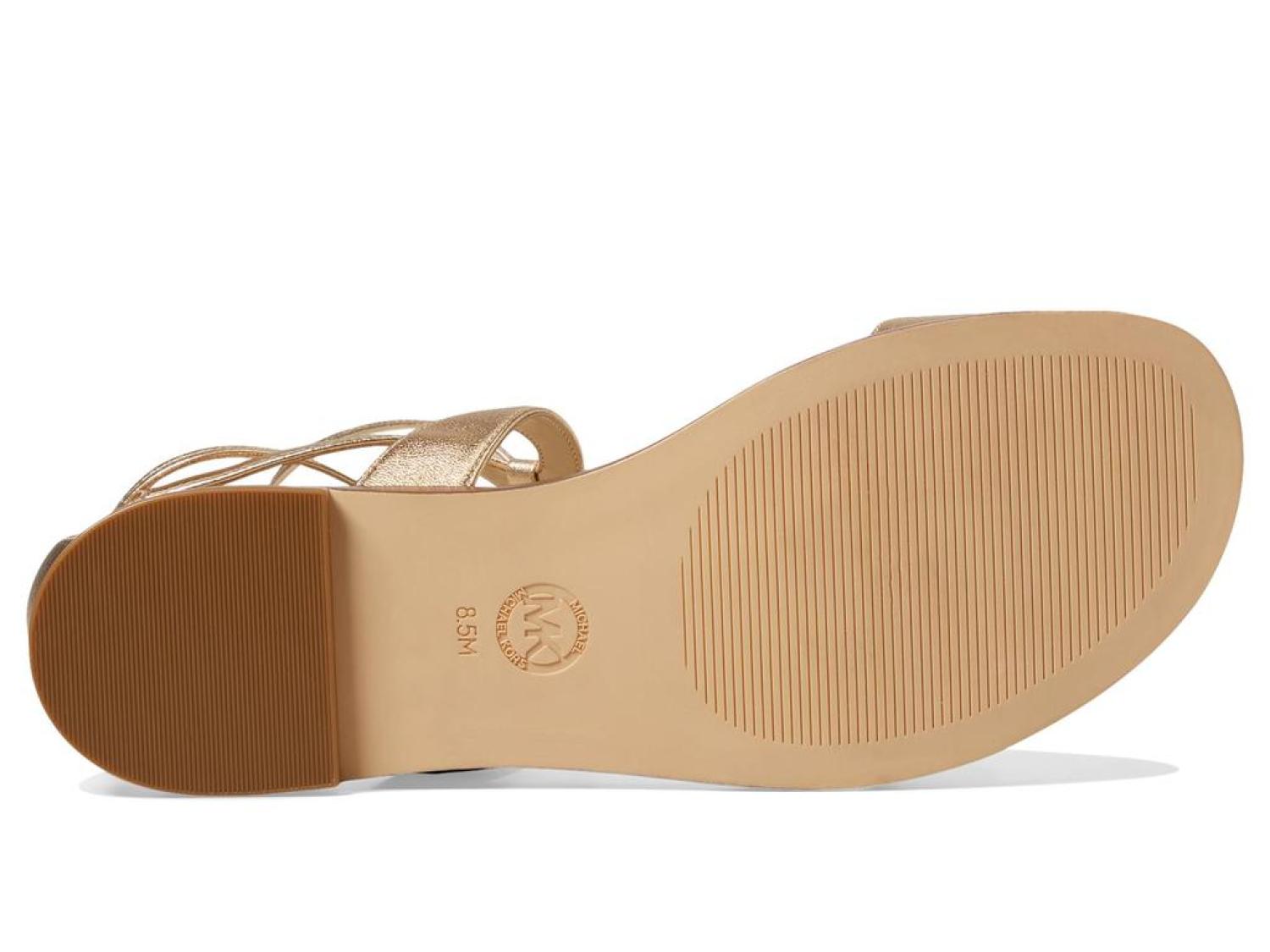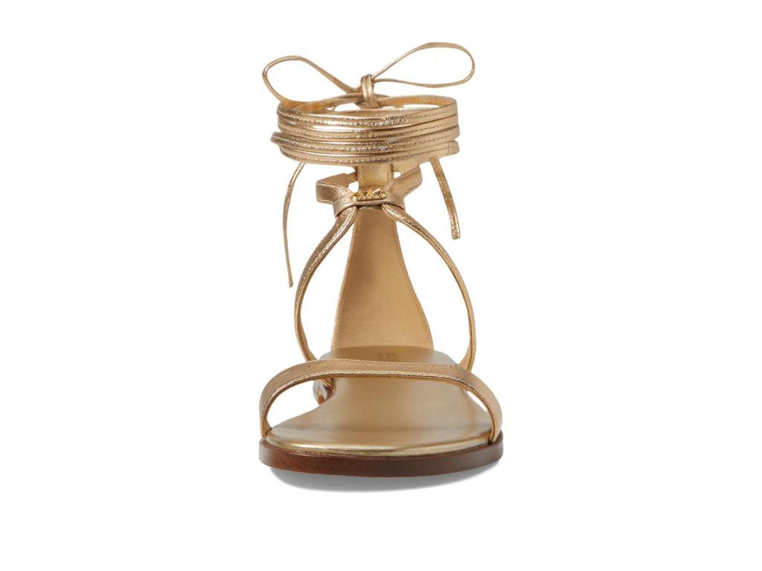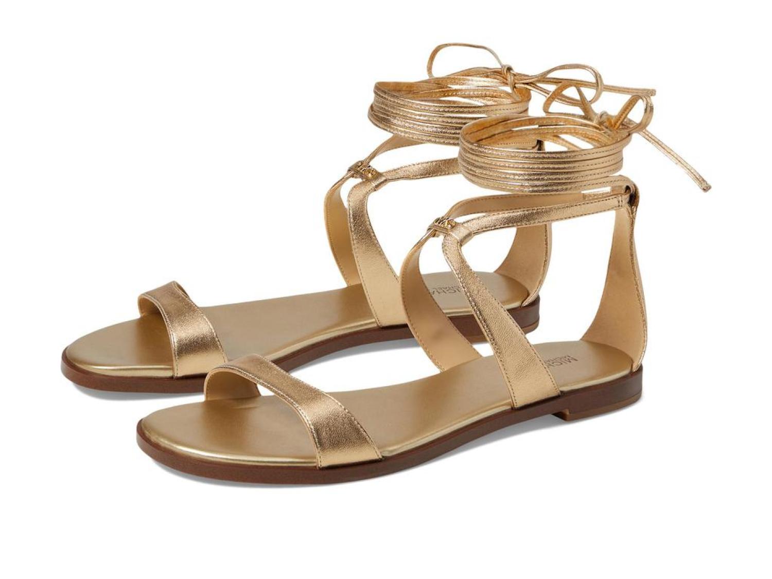 • Dance to the rhythm of your style wearing the MICHAEL Michael Kors® Amara Flat Sandals. The footwear features leather upper construction with lace-up closure along the ankle and open round toe silhouette.