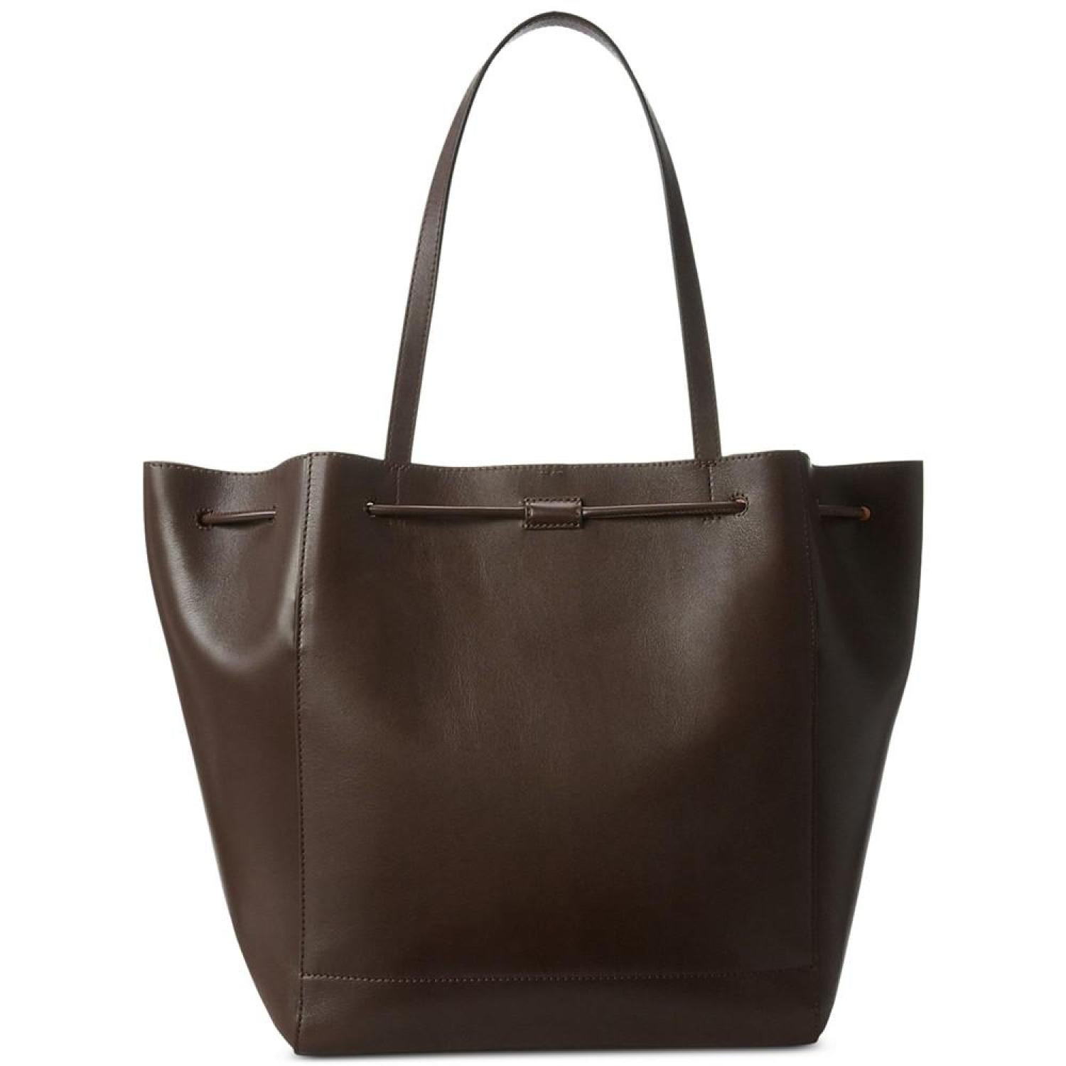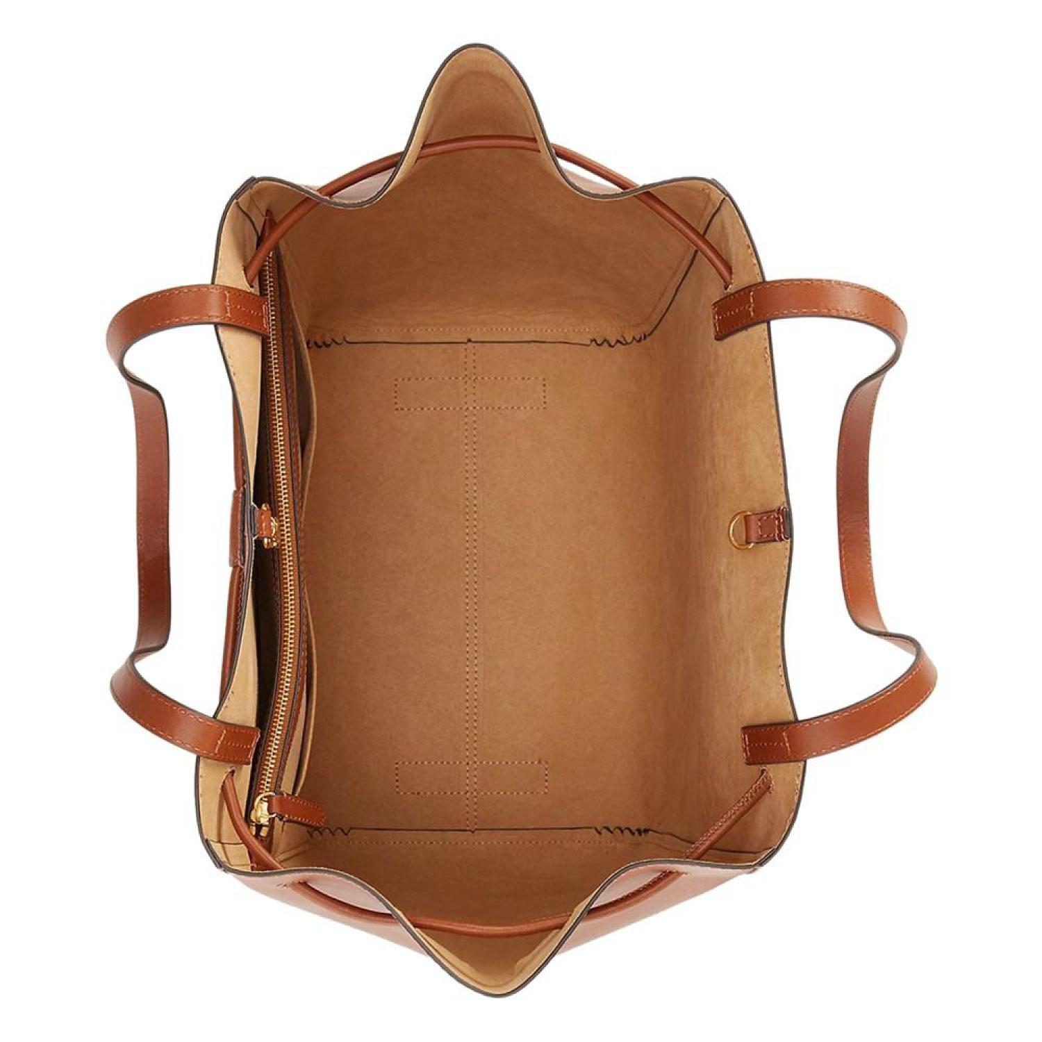 Lauren Ralph Lauren's Andie is designed with a spacious, trapezoid-shaped silhouette, perfect for storing your essentials. Crafted with supple full-grain leather, it features an oversize "LRL" metal stopper for an iconic touch.
