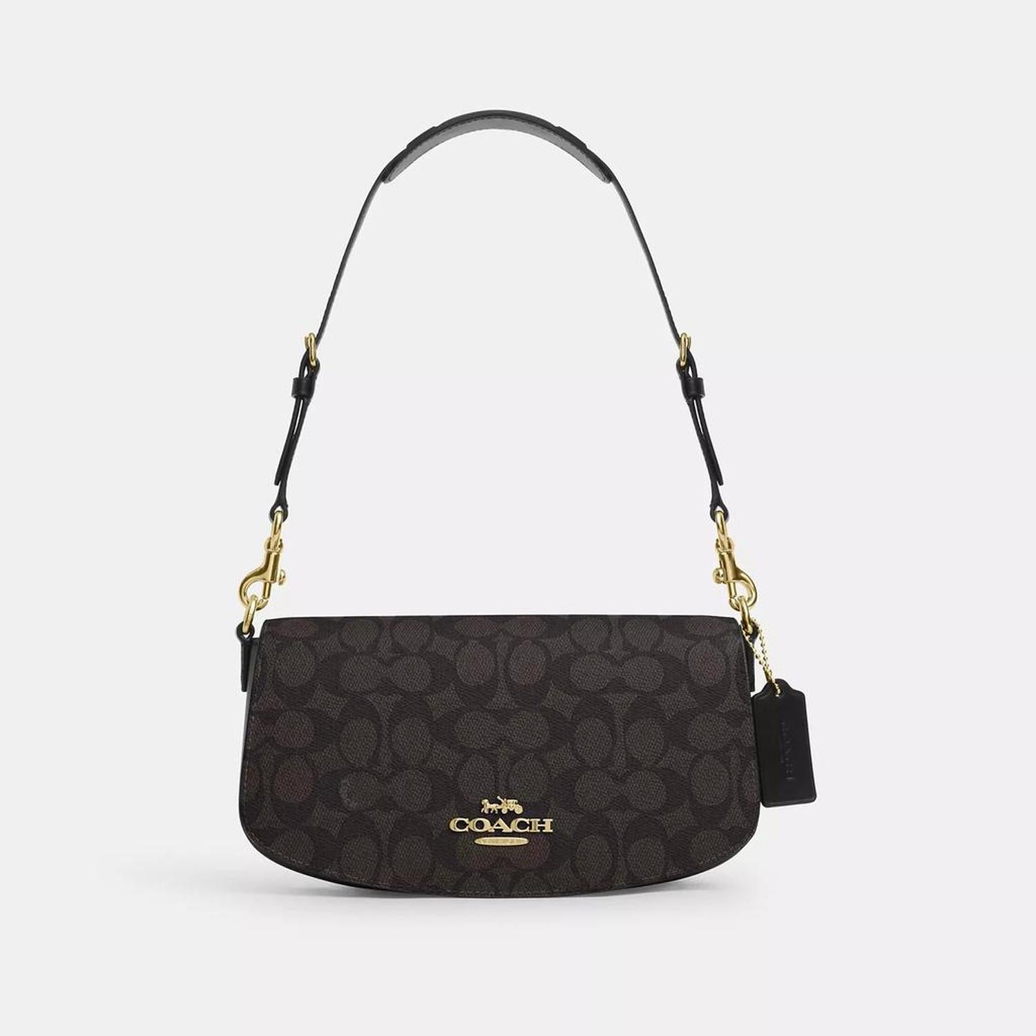 Signature coated canvas and refined calf leather Inside multifunction pockets Magnetic snap closure fabric lining Outside open pocket Detachable strap with 9 3/4 drop 9 1/2 (L) x 5 1/4 (H) x 2 1/4 (W) Style No. CV973 | Coach Outlet Andrea Shoulder Bag In Signature Canvas - Beige