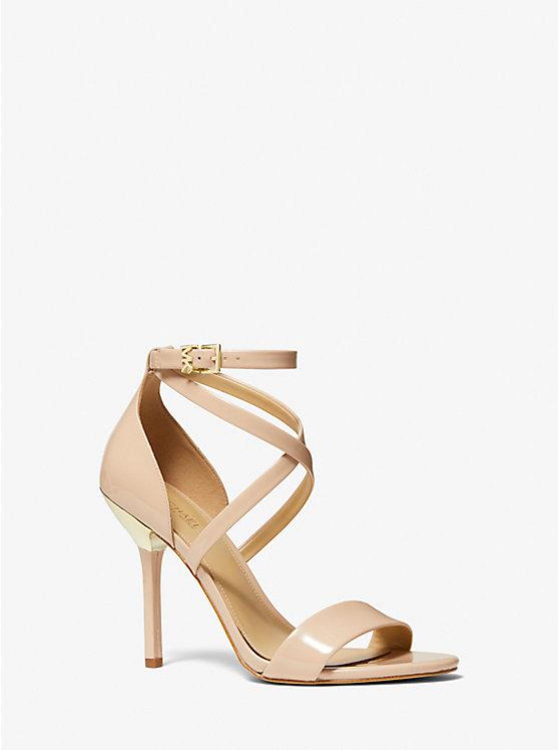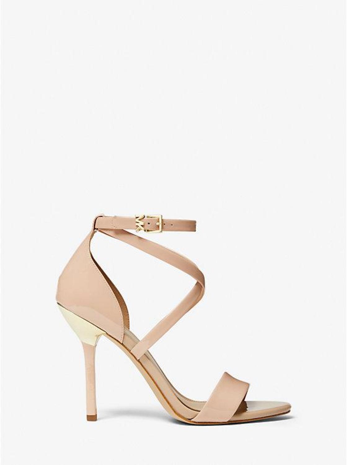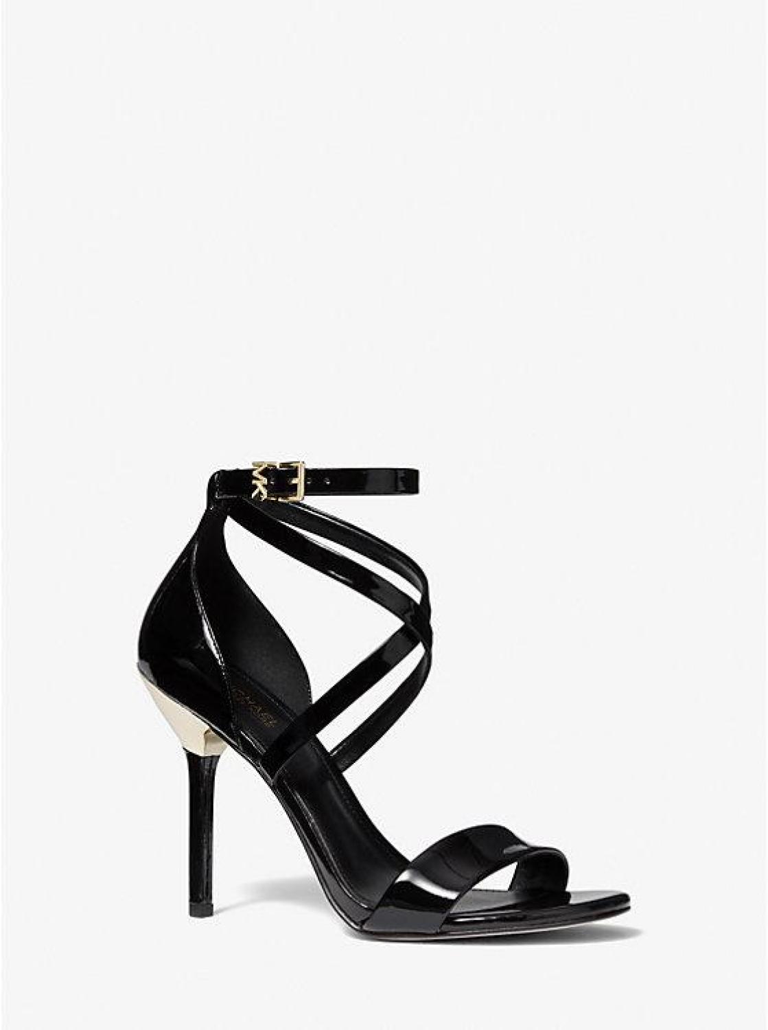 • Designed to perfection, our Astrid sandal will have you treading confidently at your next soirée. This glossy patent leather pair is defined by metallic accents and crossover straps that beautifully frame the foot. While the styling options are endless, we think they’re best reserved for a special night out.