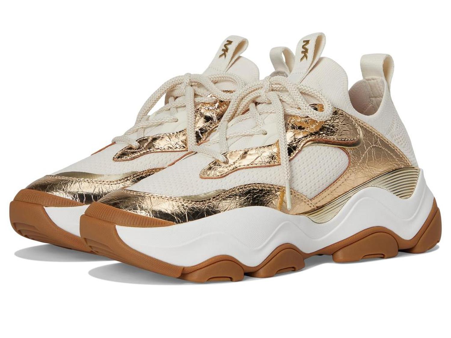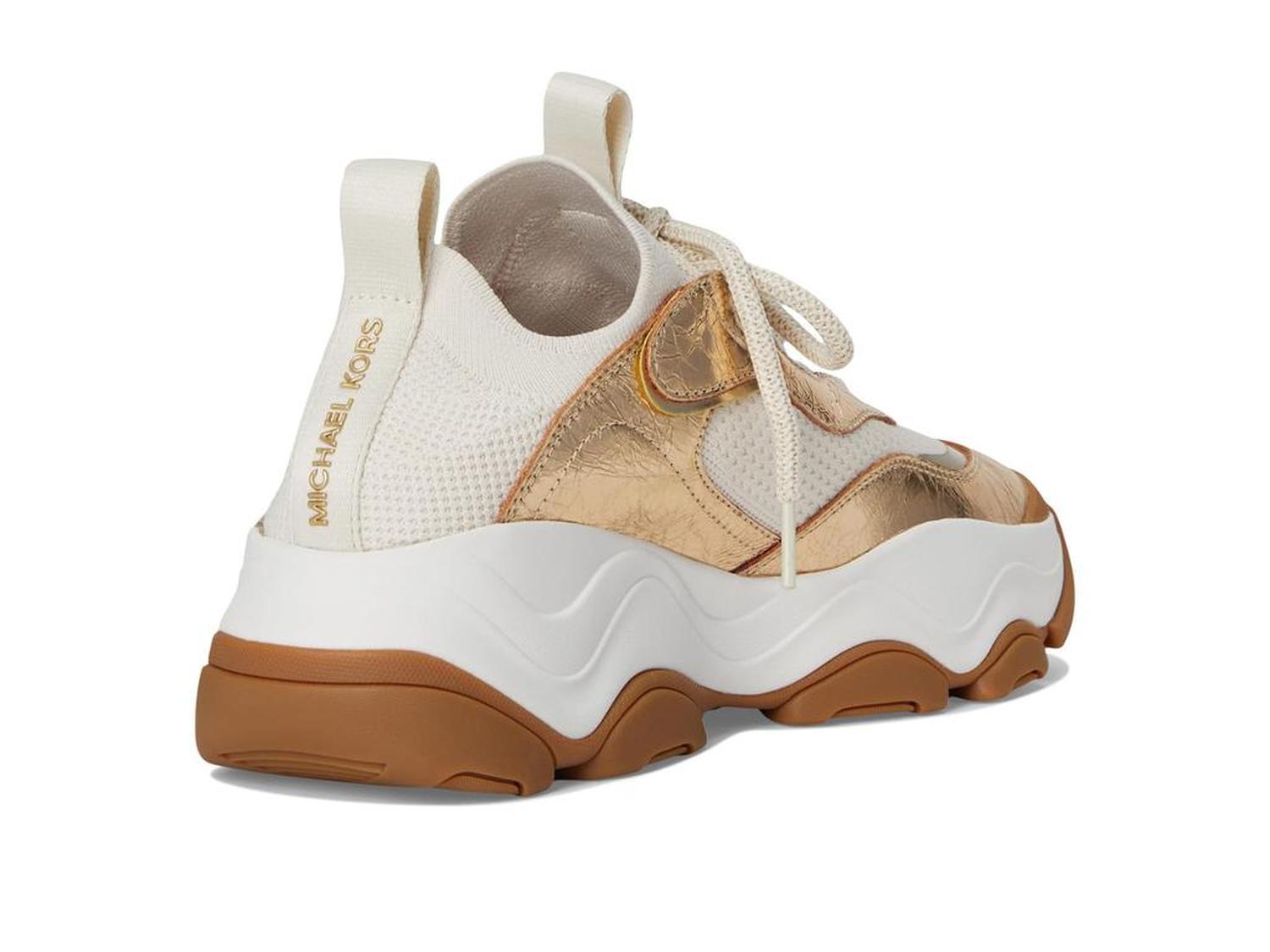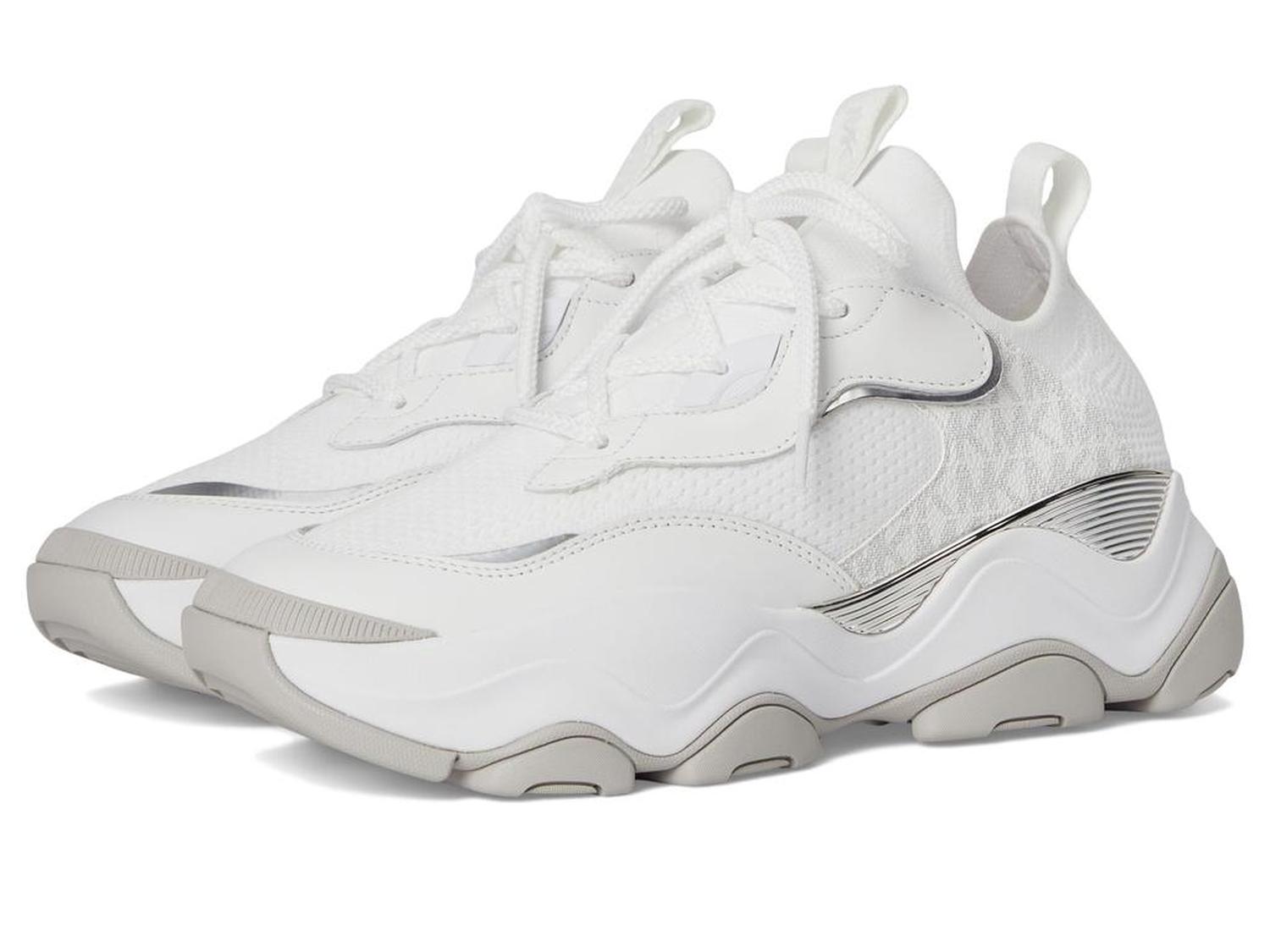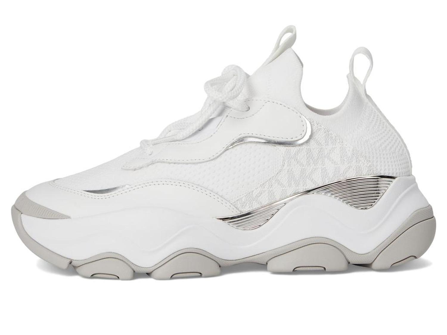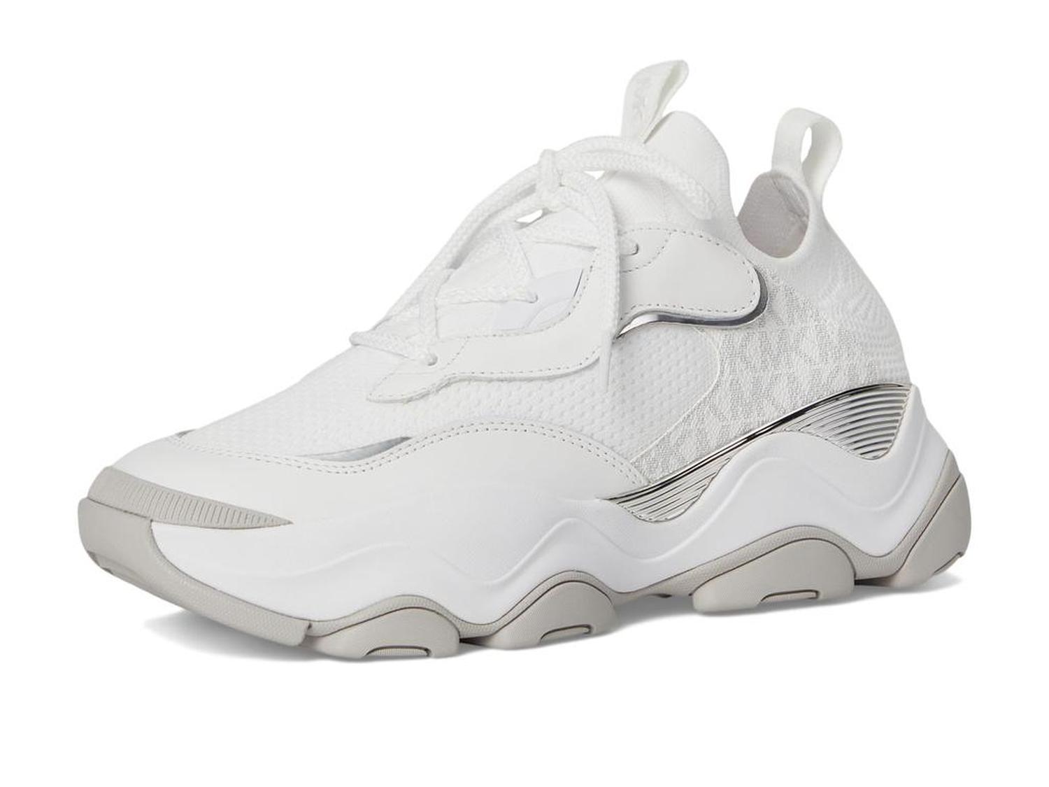 • Trend meets comfort: The MICHAEL Michael Kors® Atlas Knit Trainer is the perfect everyday shoe. Featuring a breathable polyester knit upper with a chic cinched collar, it offers unparalleled comfort and flexibility. The Ortholite® foam footbed provides all-day support, while the durable rubber outsole ensures every step feels secure. Effortlessly slip them on with front and back pull tabs, adorned with silicone-printed branding for a luxe touch. Finished with a lace-up closure for a custom fit, these trainers redefine athleisure-keeping you stylish, comfortable, and ready to conquer your day.