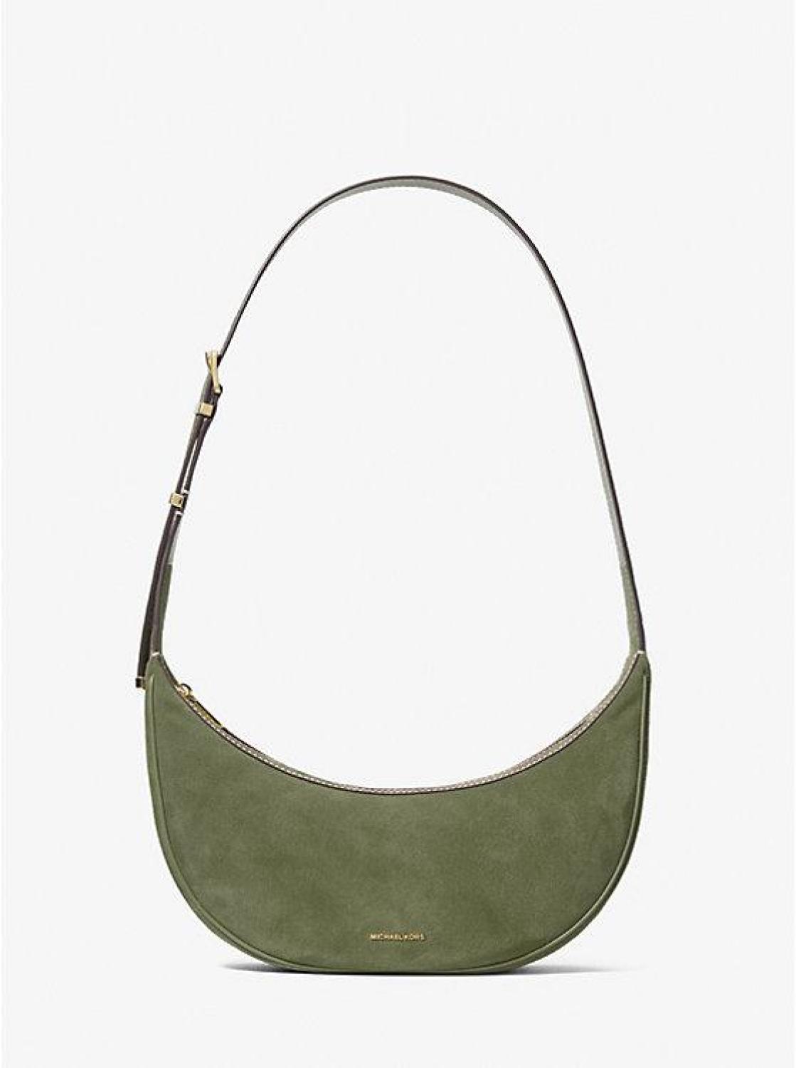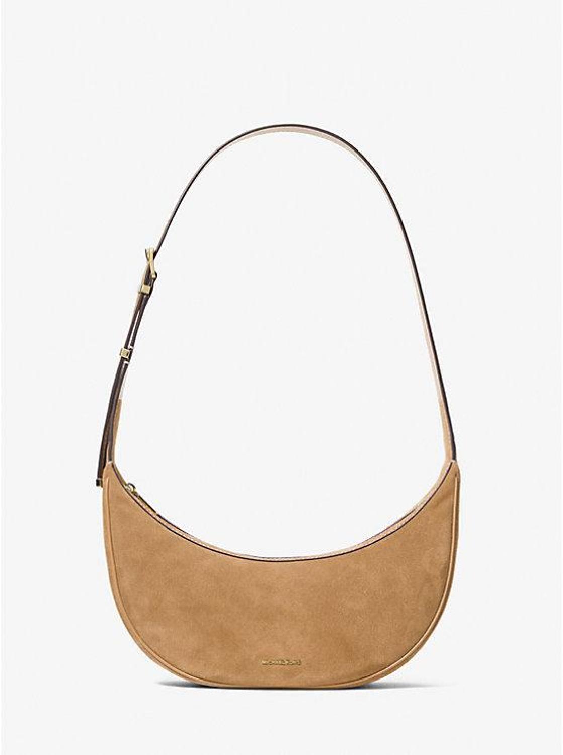 • Our Avra bag just might be the chicest way to carry your daily essentials. It’s made from sumptuous suede in a crescent shape with a buckled strap that can be adjusted to your desired length. The slim profile makes it well suited for any number of occasions.