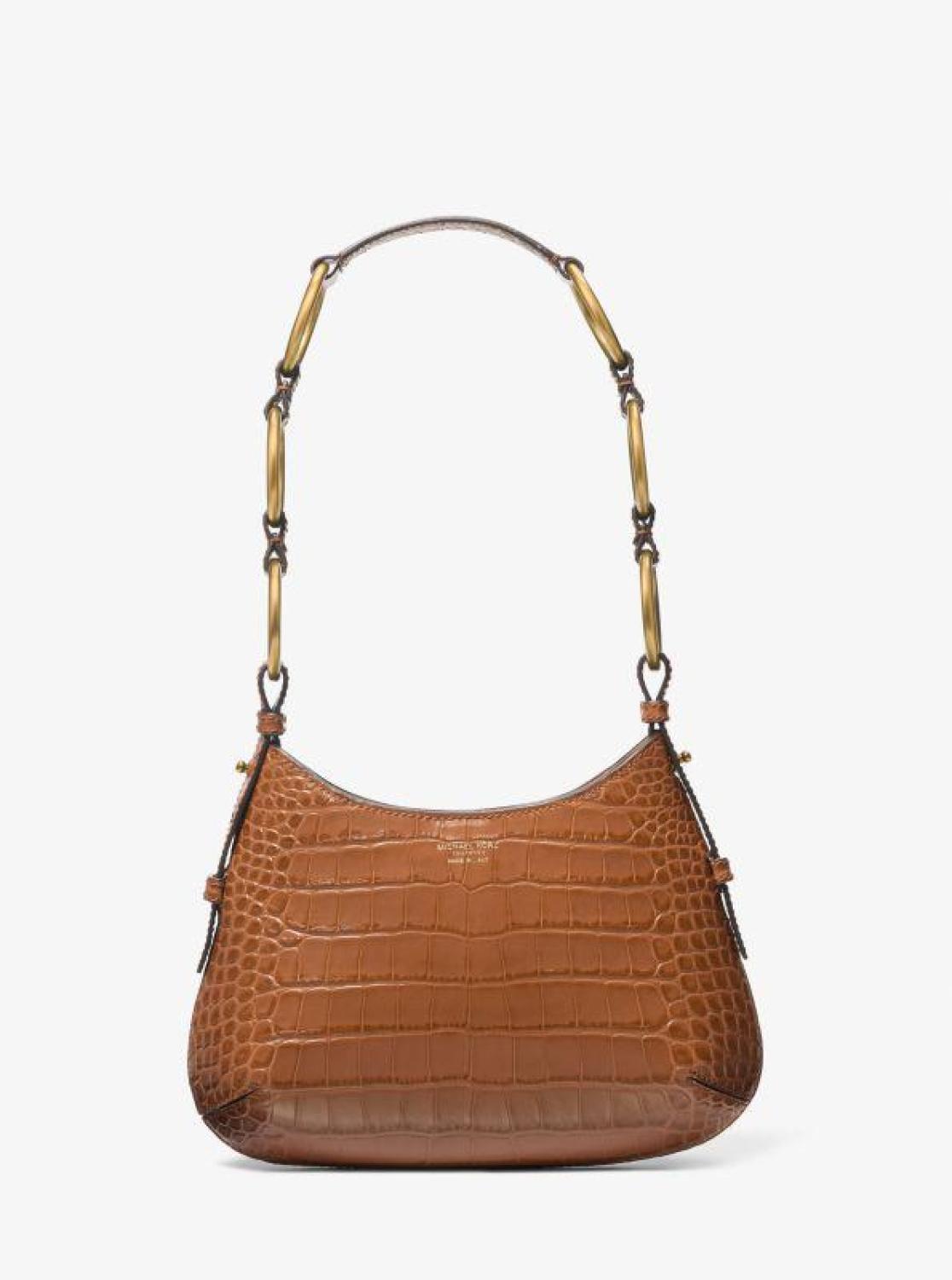 The mini Bardot bag evokes the chic, laid-back feel of a great vacation. The softly structured hobo silhouette, crocodile-embossed patent leather, and ring-embellished strap channel a glam sensibility that works year-round, in the city or at the beach. This striking carryall features a suede-lined interior sized to hold an evening’s worth of essentials. Made in Italy. • Hobo bag • Crocodile embossed patent leather • 100% leather • Antique gold-tone hardware • 10.43"W X 7.48"H X 3.15"D • Handle drop: 11” • Interior details: zip pocket • Lining: 100% suede • Snap fastening • Made in Italy • Hobo bag • Crocodile embossed patent leather • 100% leather • Antique gold-tone hardware • 10.43"W X 7.48"H X 3.15"D • Handle drop: 11” • Interior details: zip pocket • Lining: 100% suede • Snap fastening • Made in Italy