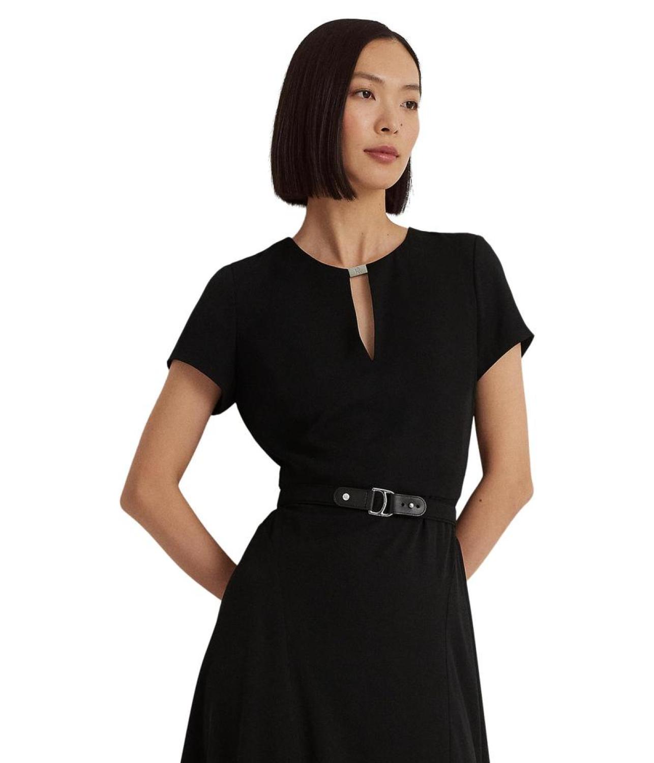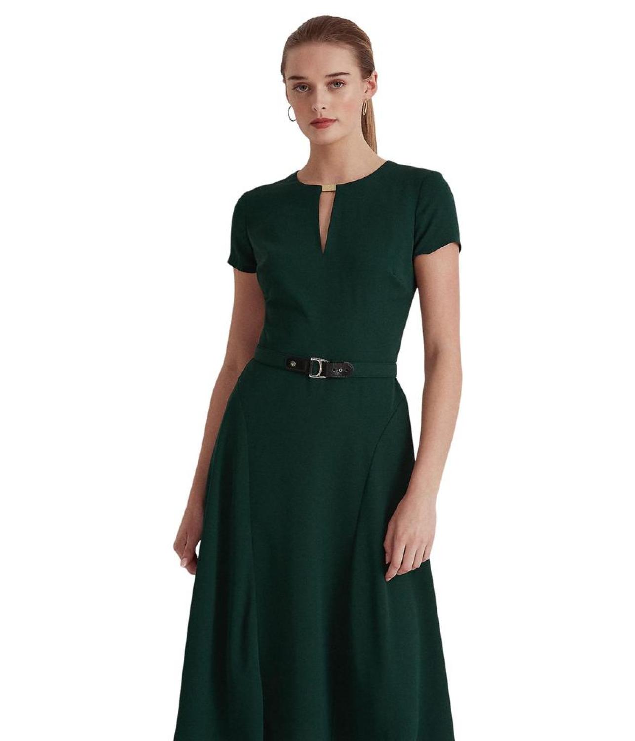Keep yourself semi-formal and classy wearing the LAUREN Ralph Lauren® Belted Georgette Dress. Key-hole neck and short sleeves. Complimentary belt with gold-toned buckle. Zippered closure at the back. 100% polyester. Machine wash, dry flat. Imported. Product measurements were taken using size 4. Please note that measurements may vary by size. Measurements: Length: 42 in-