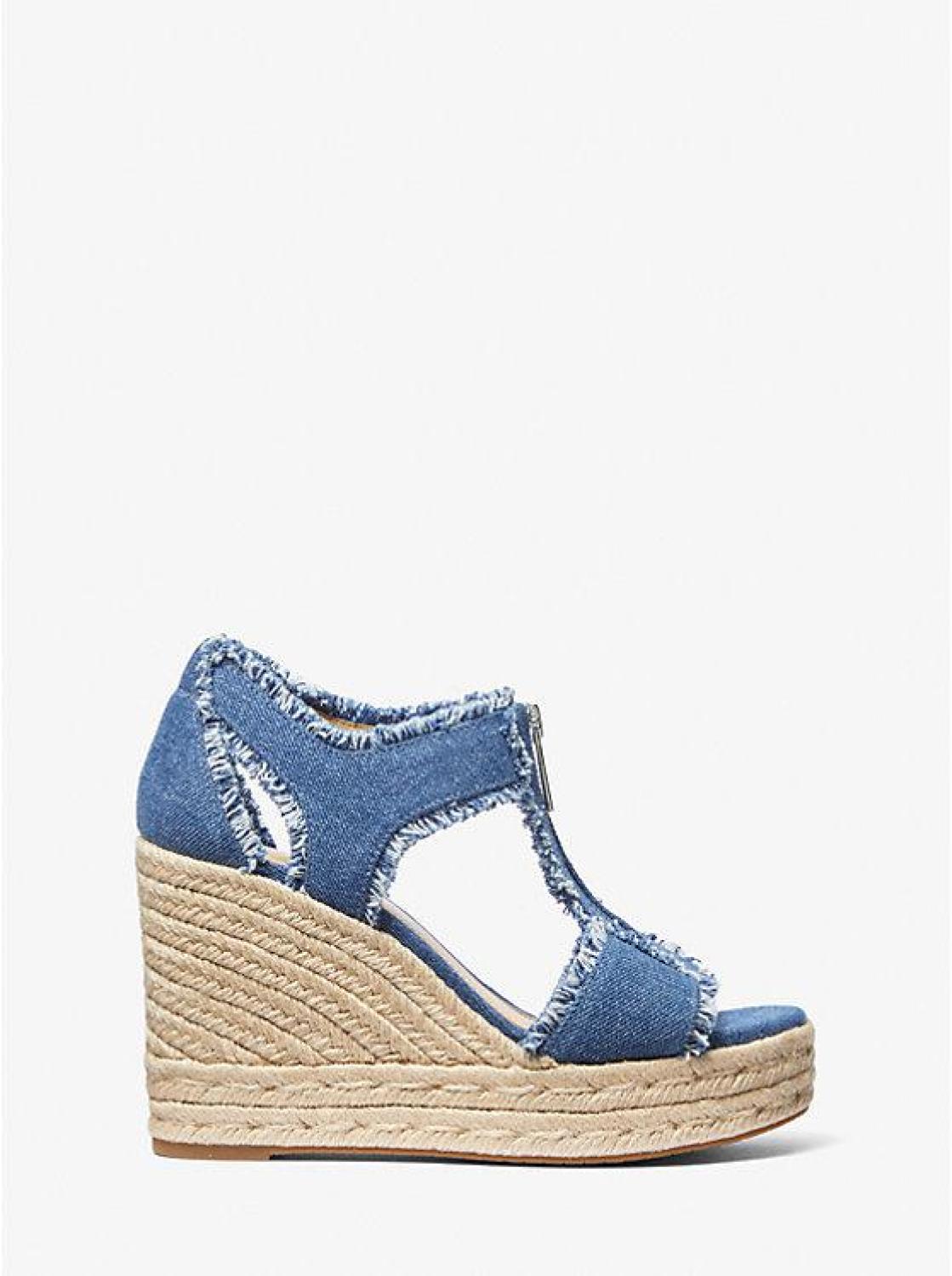 Defined by a distressed denim construction, our Berkley wedge sandal is equal parts glamorous and effortless. It’s set on a jute-trimmed wedge sole for tactile appeal, and features a sporty zip fastening that ensures easy wear. Team this pair with everything from breezy maxi dresses to dark wash denim. • Wedge sandal • Denim • 100% cotton • Lining: polyurethane blend • Sole: rubber • Open toe • Zip fastening • Heel height: 4" • Heel type: jute • Imported • Wedge sandal • Denim • 100% cotton • Lining: polyurethane blend • Sole: rubber • Open toe • Zip fastening • Heel height: 4" • Heel type: jute • Imported