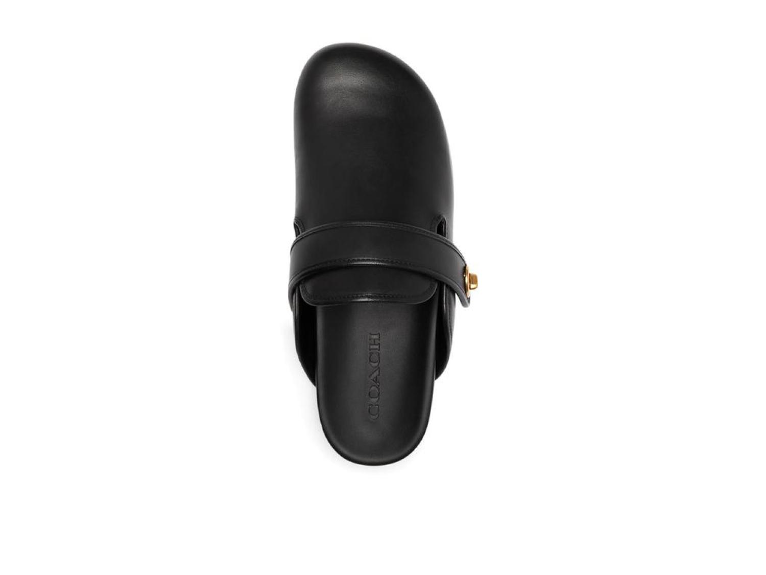 Casual and chic! The COACH® Blake Clogs are the perfect addition to your effortless wardrobe styling. These slip-on clogs feature a round toe silhouette, strap across the vamp with metal hardware, leather upper, and man-made leather lining and insole.