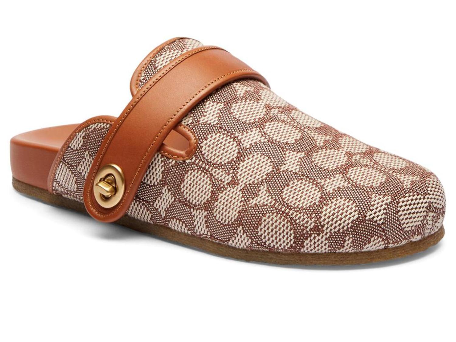 Take any outfit to the next level with the COACH™ Blake Clogs in Signature Textile Jacquard.  The slide-on, round toe style features textile uppers with leather accents and allover branded patterning.  The comfort is boosted thanks to the man-made faux leather linings and insoles.