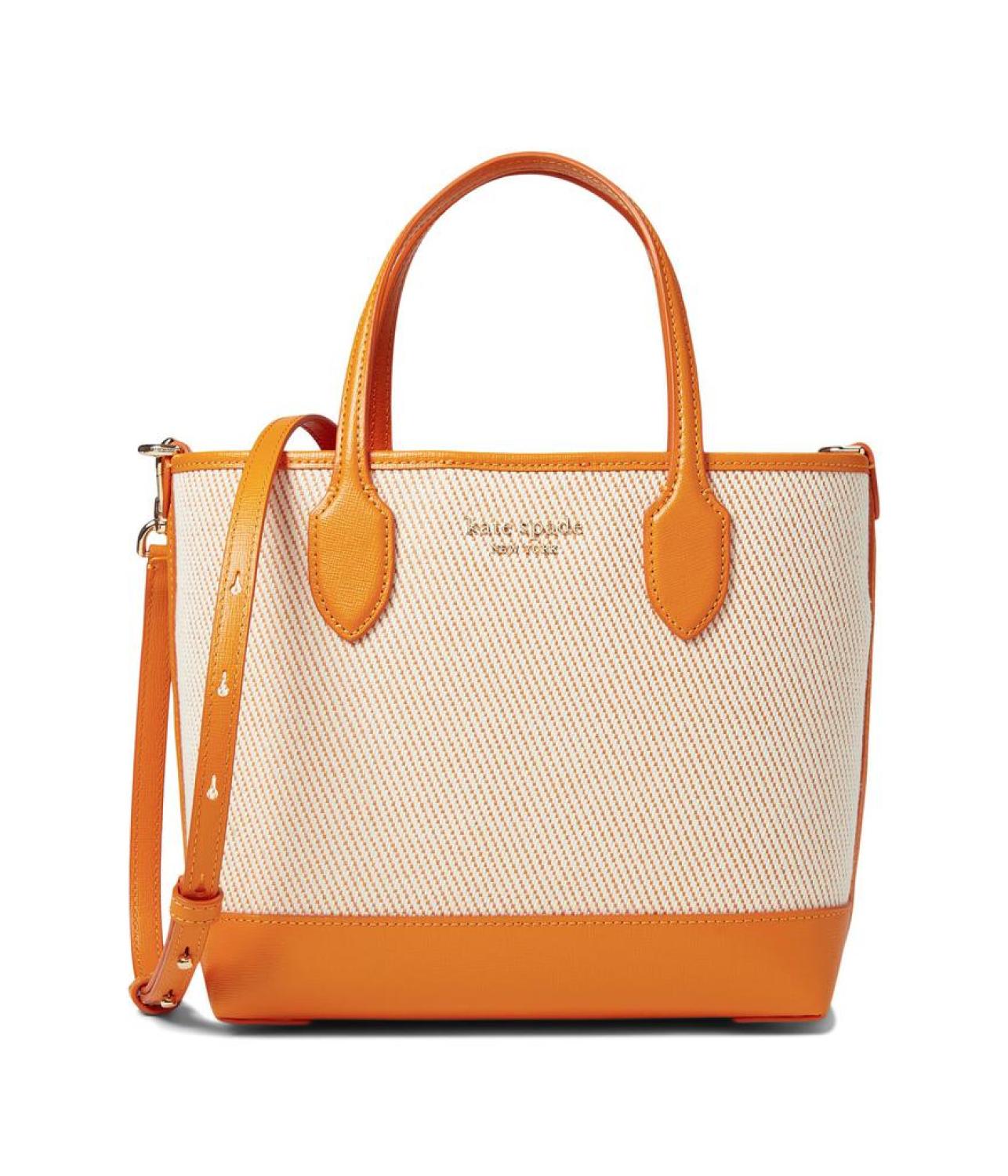 • Flaunt your elite taste by carrying essentials in the Kate Spade New York® Bleecker Canvas Medium Crossbody Tote Bag that comes in a lightweight design with leather construction and polyester lining. The tote bag features two shoulder straps, one adjustable crossbody strap, magnetic closure with two internal compartments, and one zippered pocket. The Kate Spade New York® metal hardware on the front gives the bag a statement look.