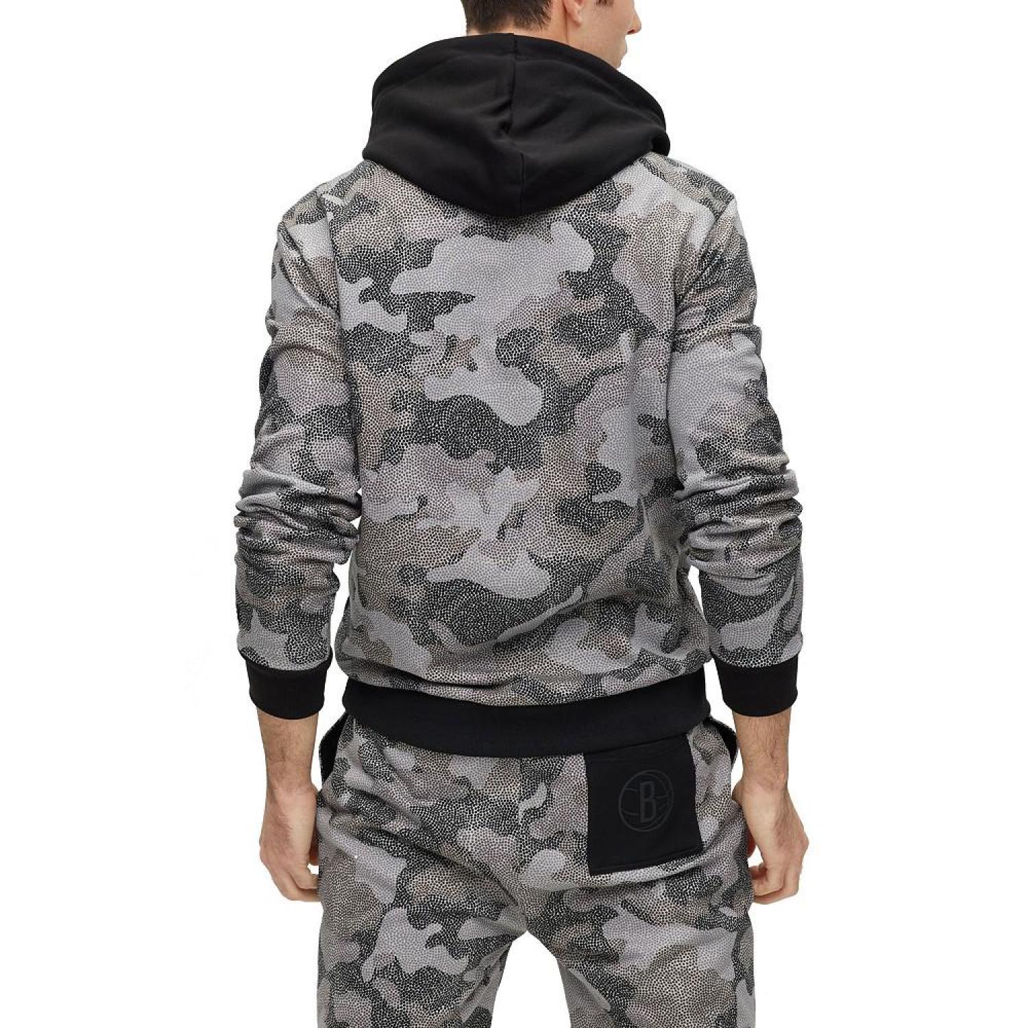 • A hoodie by BOSS menswear, detailed with collaborative branding at the chest. Featuring solid trims and exclusive labeling, this hooded sweatshirt is patterned with a camouflage motif. Co-branded dynamic casualwear part of a limited-edition Capsule collection in collaboration with NBA.