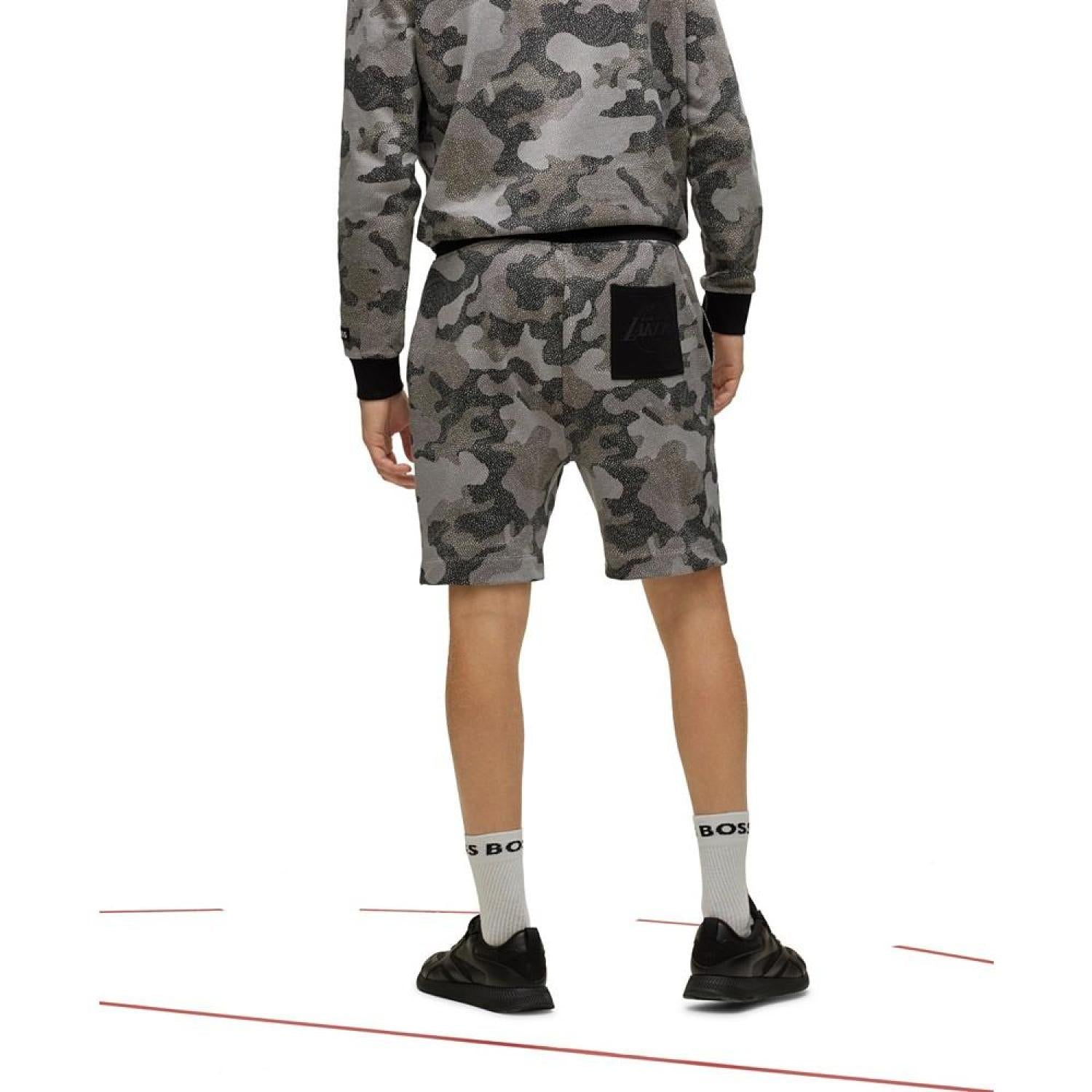 • Sporty shorts by BOSS menswear. For active comfort, these shorts are patterned with a basketball-inspired camouflage motif. Co-branded dynamic casualwear part of a limited-edition Capsule collection in collaboration with the NBA.