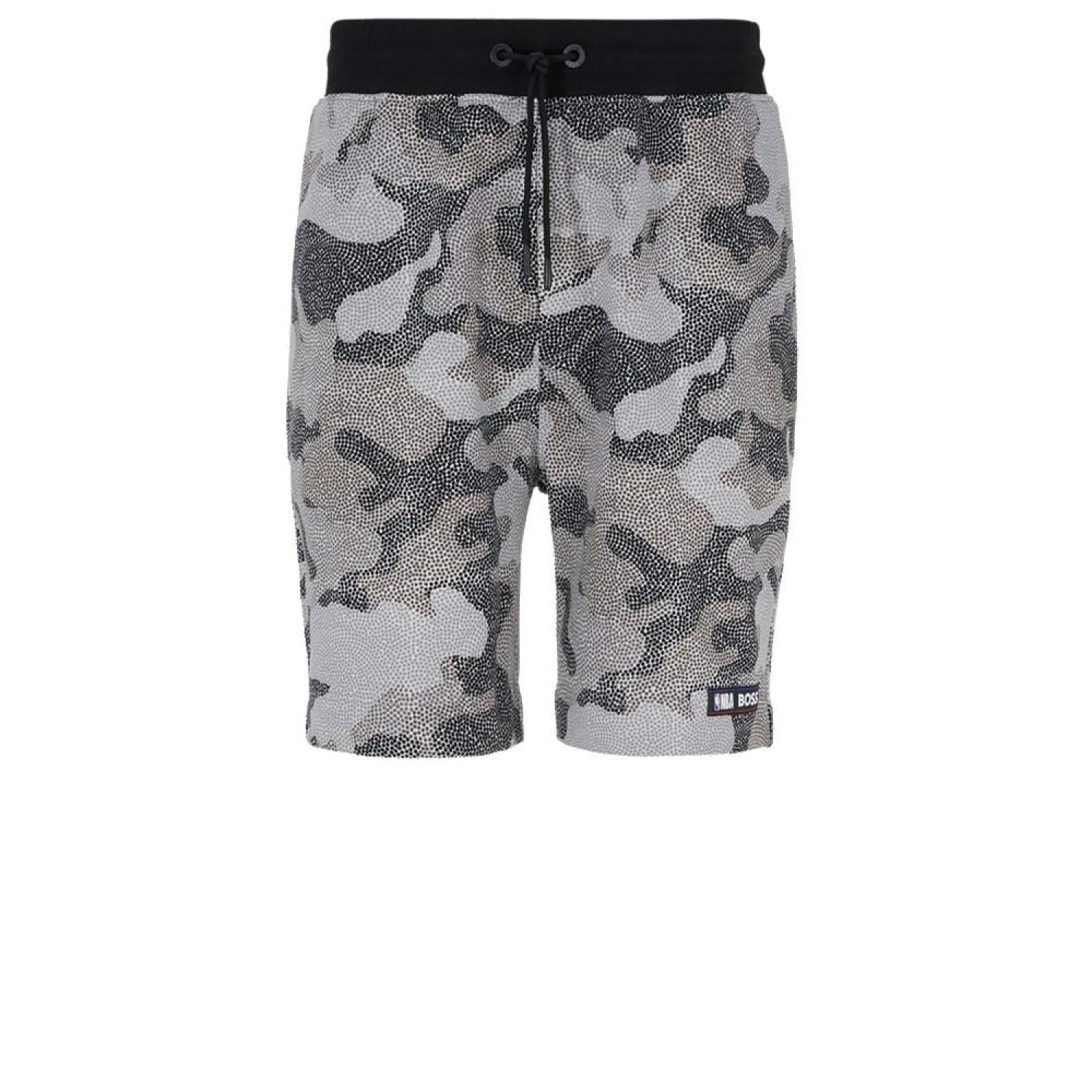 Sporty shorts by BOSS menswear. For active comfort, these shorts are patterned with a basketball-inspired camouflage motif. Co-branded dynamic casualwear part of a limited-edition Capsule collection in collaboration with the NBA.
