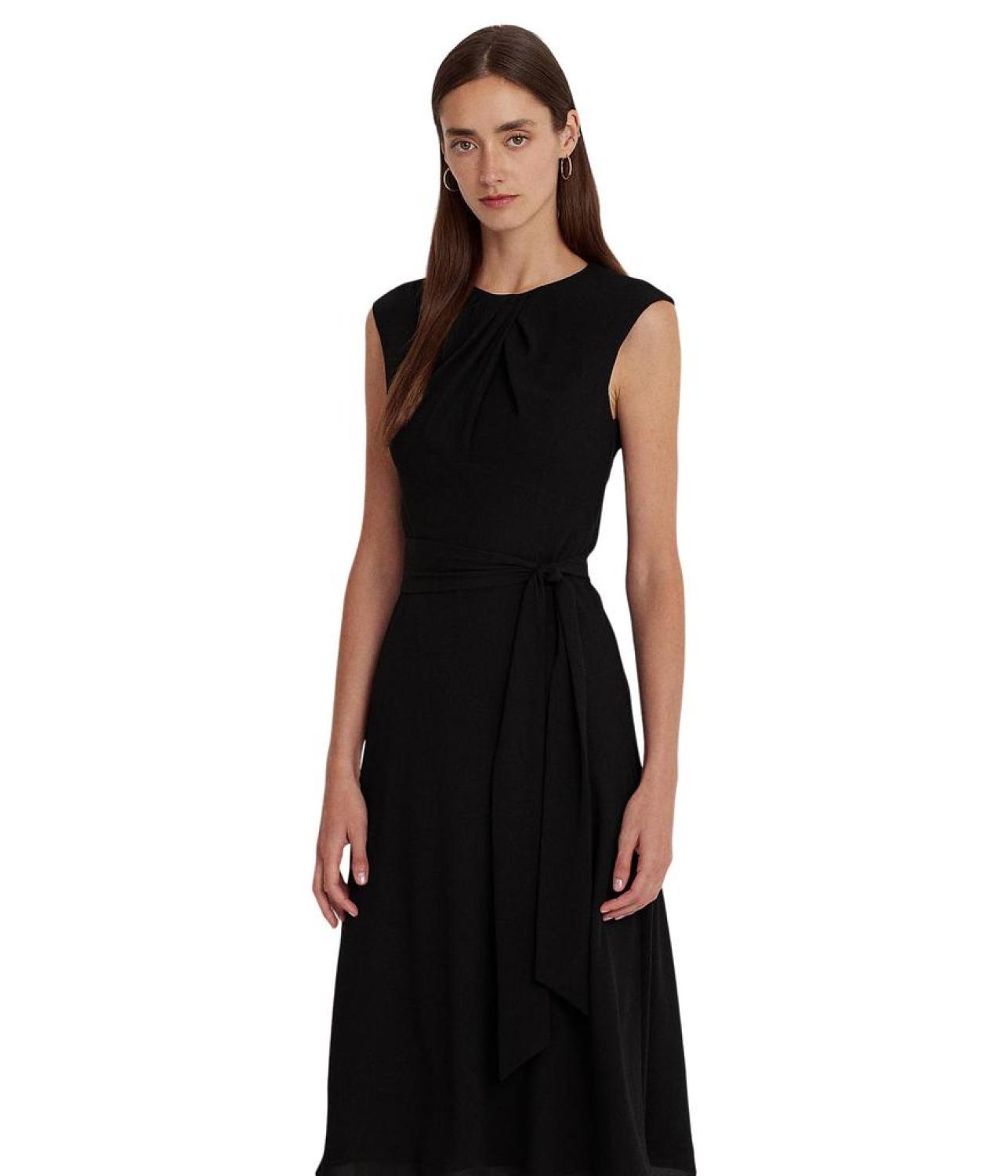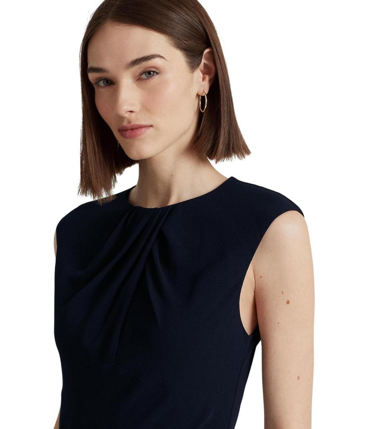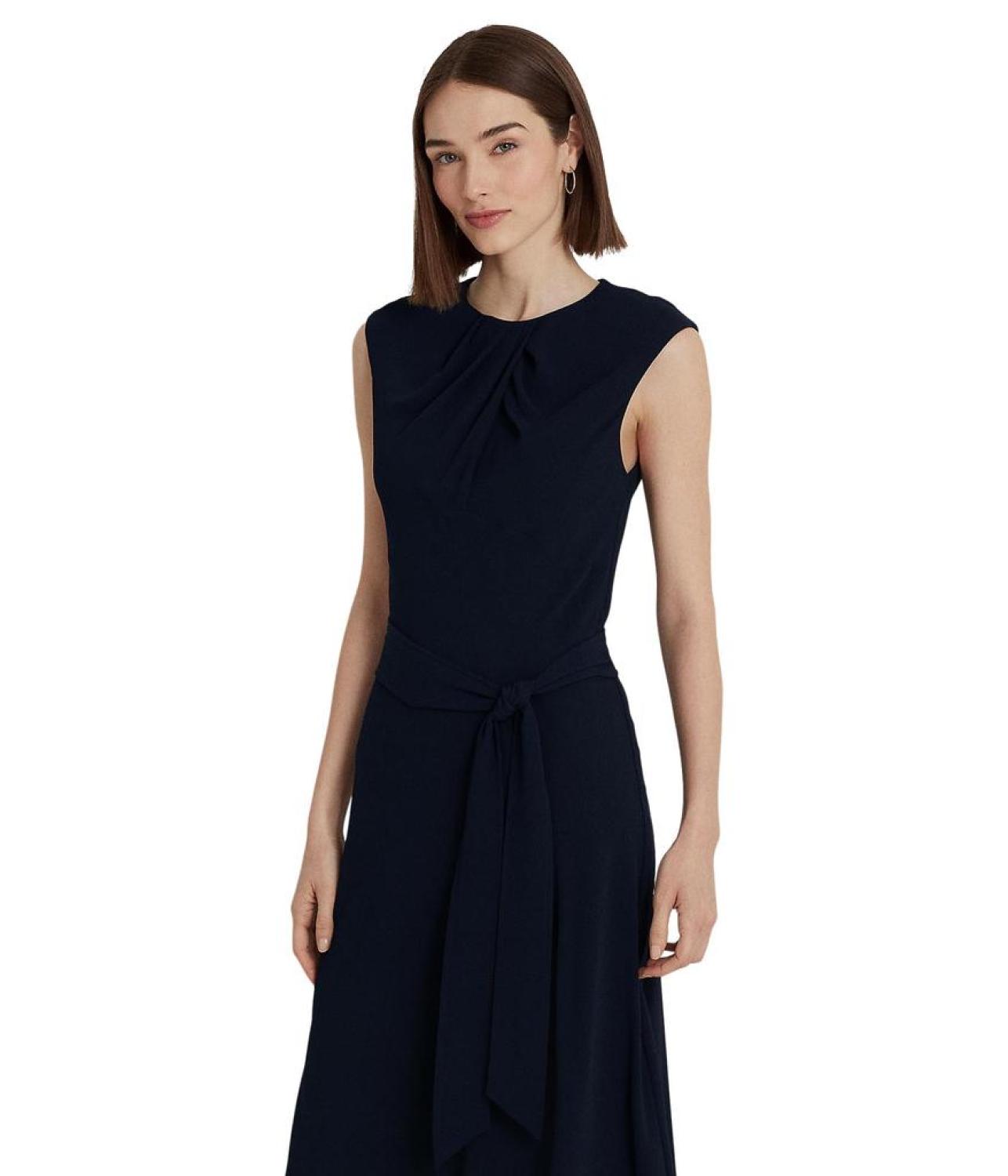 Look sophisticated wearing the airy LAUREN Ralph Lauren® Bubble Crepe Cap-Sleeve Dress. Featuring round neckline with pleating at the neckline and concealed center back zipper with a hook-and-eye closure. This A-line silhouette dress is elevated by an empire waist, and an effortless self-belt.