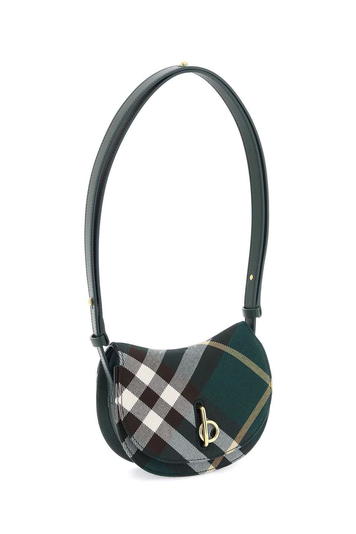 • The Burberry Rocking Horse shoulder bag is made of a wool blend with the iconic Burberry Check pattern and features a structured shape reminiscent of children's rocking horses. It has a gold metal "b" closure, leather interior, and an adjustable handle. Bag Length = 18,5 cm, Bag Height = 14 cm, Handle Height = 34 cm,