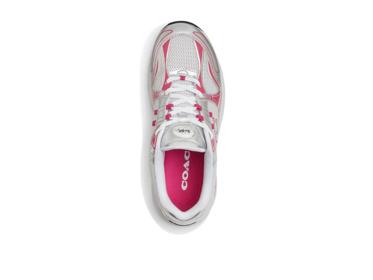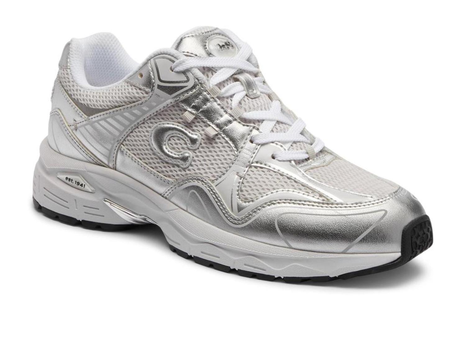 Step out in full confidence in the COACH™ C301 Sneakers.  The low-profile design is paired with the padded collars and lace-up closures for a secure and comfortable fit.  The closed, round toe silhouette is accented with metallic pieces and branded designs.